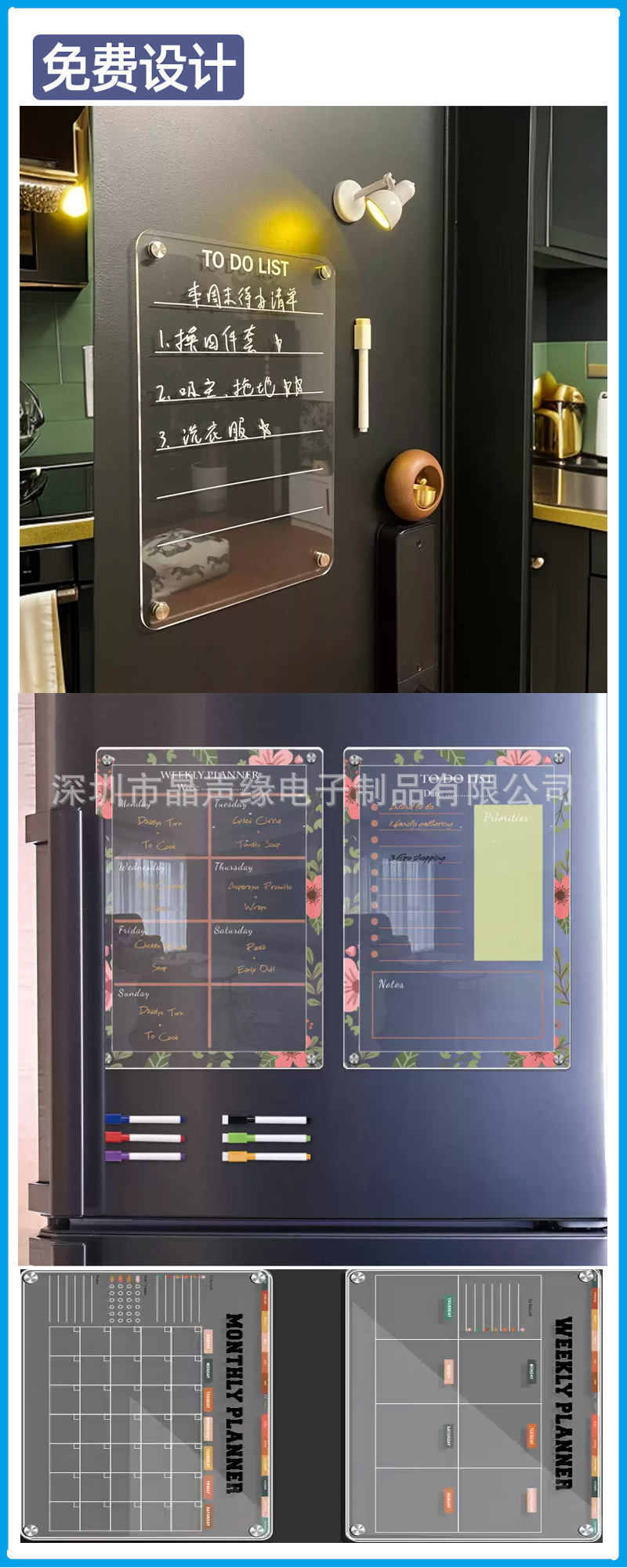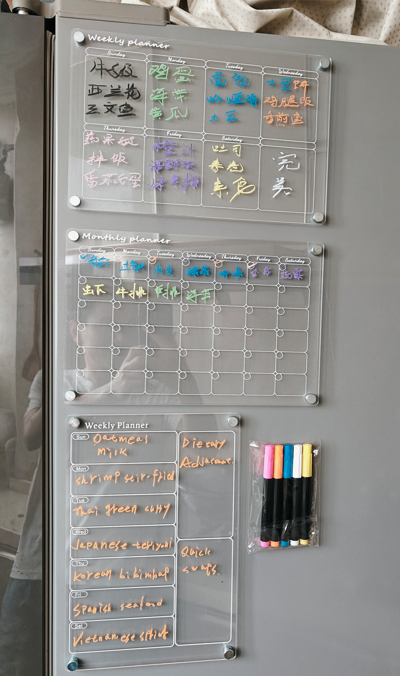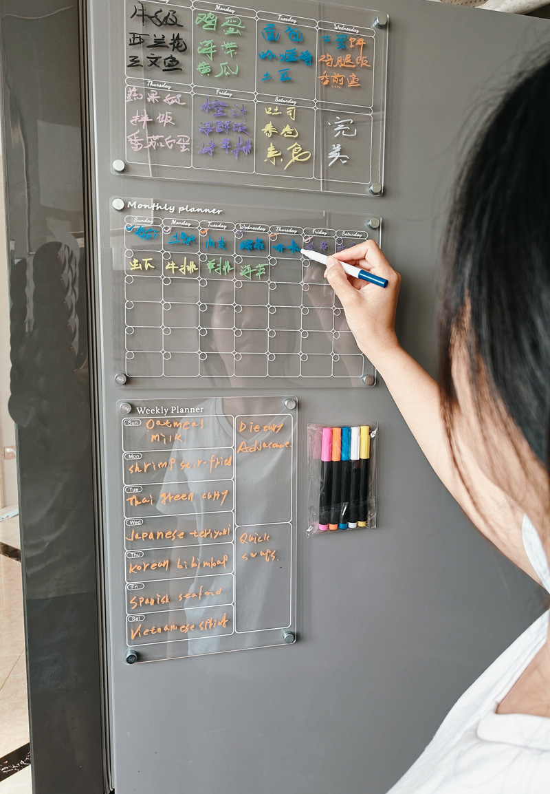 アクリルライティングボード透明メモボードとメモライティングボードウィークリーマンスリープランナー磁気冷蔵庫マグネット卸売
