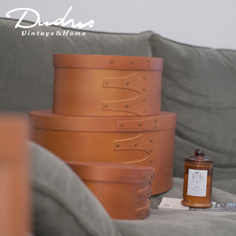 北欧レトロ手作り木製シャックボックス中古ニッチアートシンプルな収納ボックスハイエンド楕円形収納バスケット