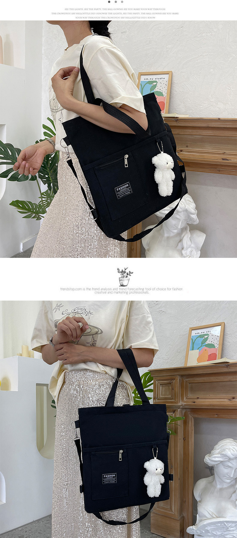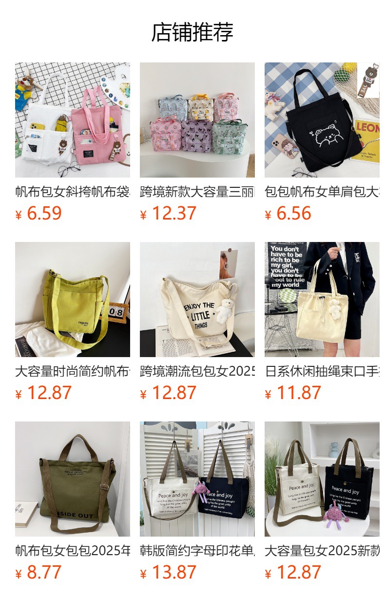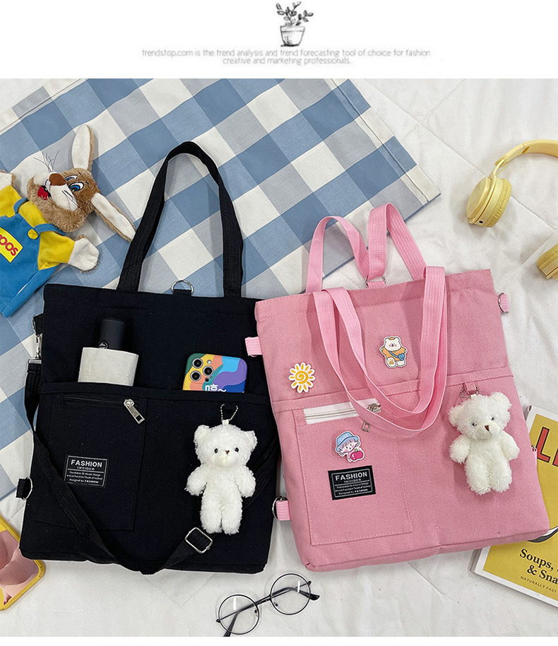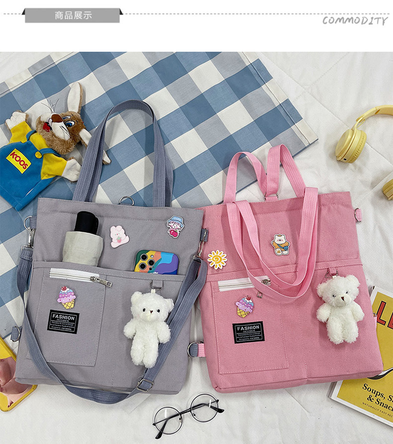 ins帆布包女学生韩版斜挎包潮搭大容量时尚单肩手提补习袋双肩包