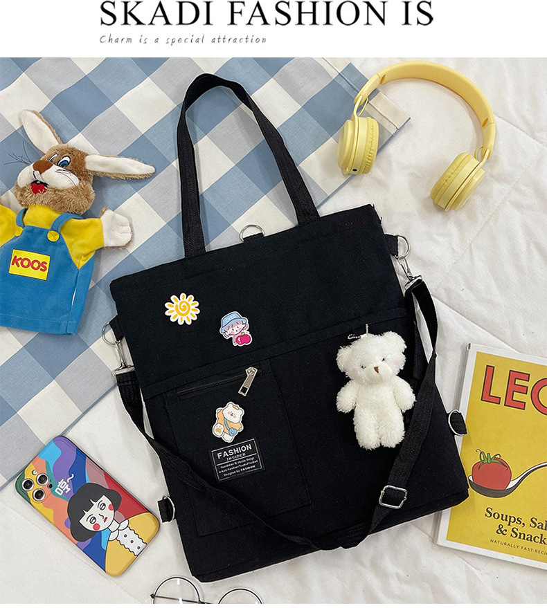 インスキャンバスバッグ女子学生韓国風斜め掛けバッグ大容量おしゃれ多用途ショルダーバッグ手提げ塾バッグリュック