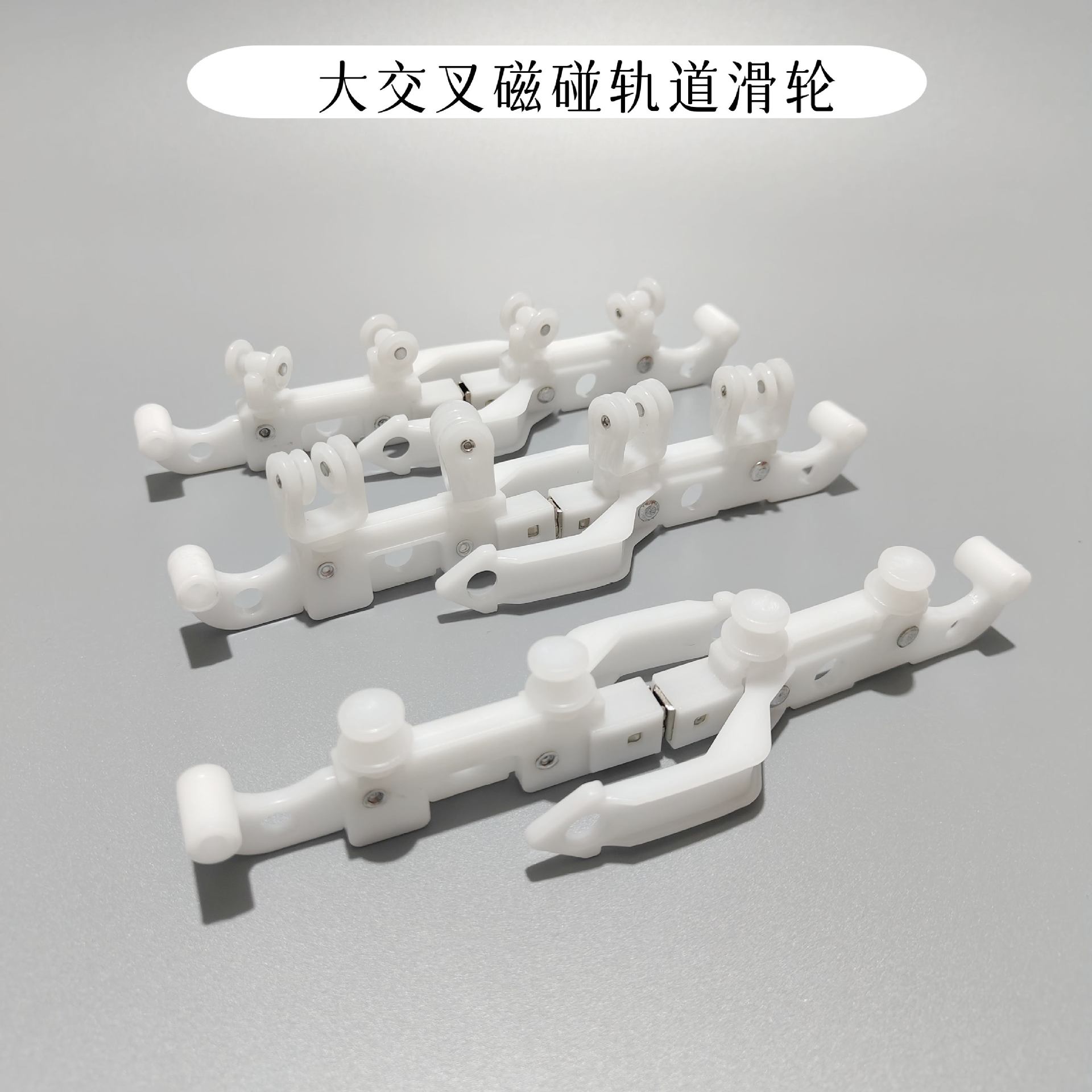 窗帘轨道配件交叉磁碰闭合防漏光滑轮方轨弯轨pom磁铁滑轮批发