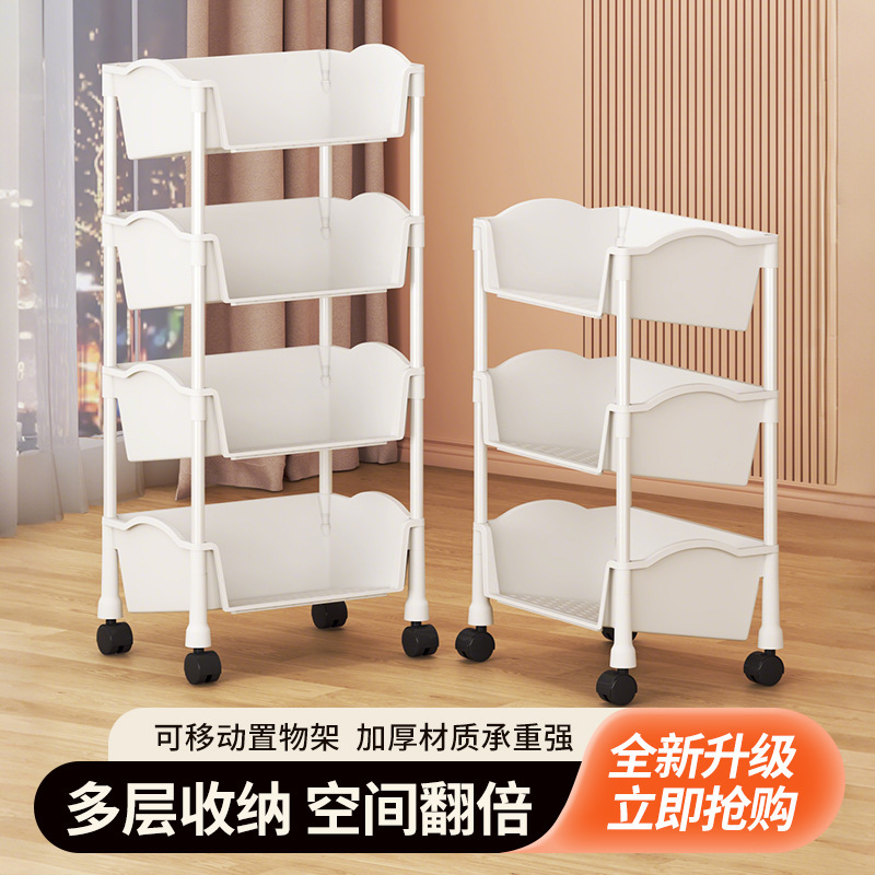 新しい卸売ブックラックスナック雑貨収納ラックリビングルームキッチンモバイルホームフロアトロリー収納ラック