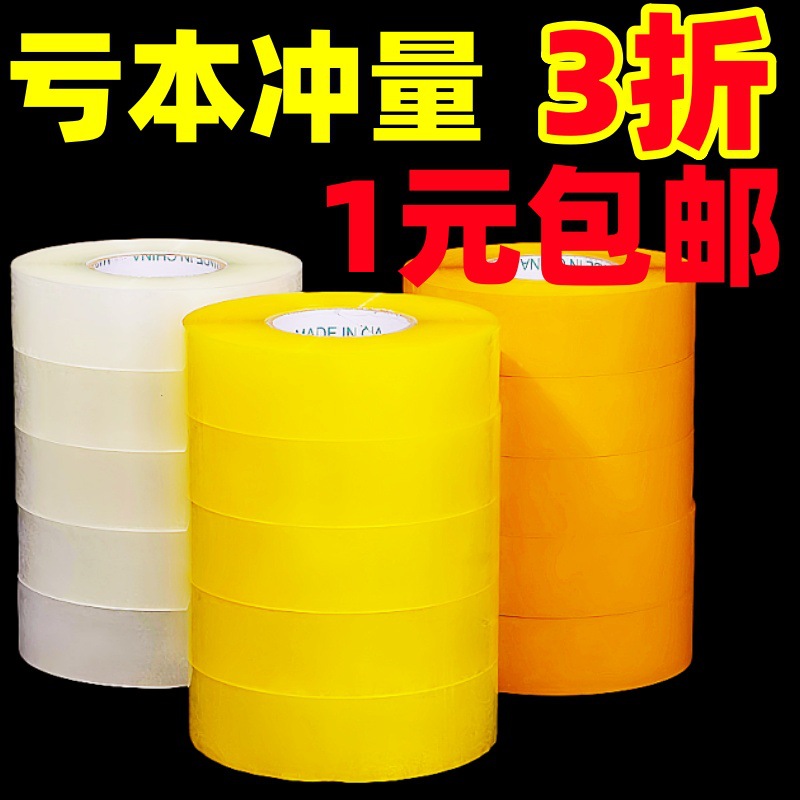 透明胶带一卷批发快递打包整箱胶带米黄淡黄封箱不易断高粘度胶布