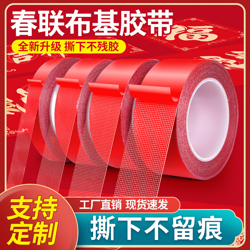 贴春联对联双面胶带福字不留痕迹双面无痕胶布婚庆婚红色网格布基