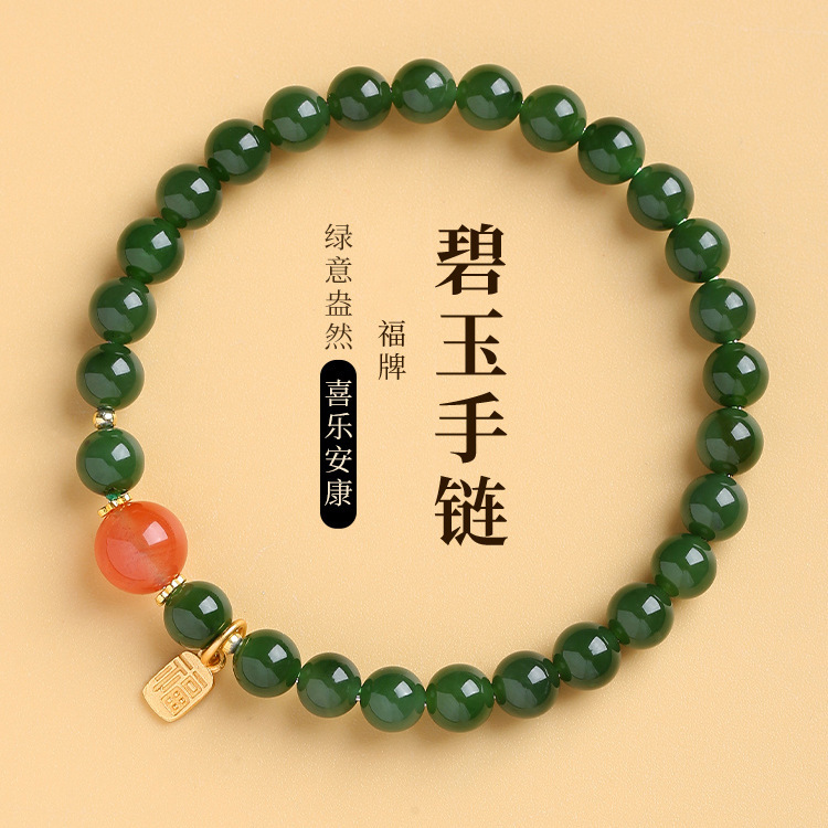 新しい中国式の緑色の手串の軽豪華な大衆の設計は玉の福のブランドのブレスレットの女性の数珠をまねて白い手を飾って飾ります。