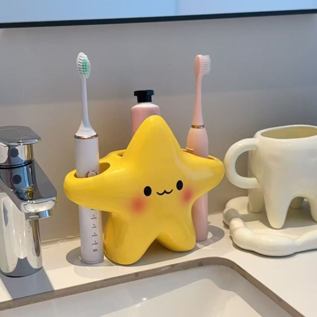 卡通星星电动牙刷置物架卫生间洗漱台牙刷牙具牙膏收纳架