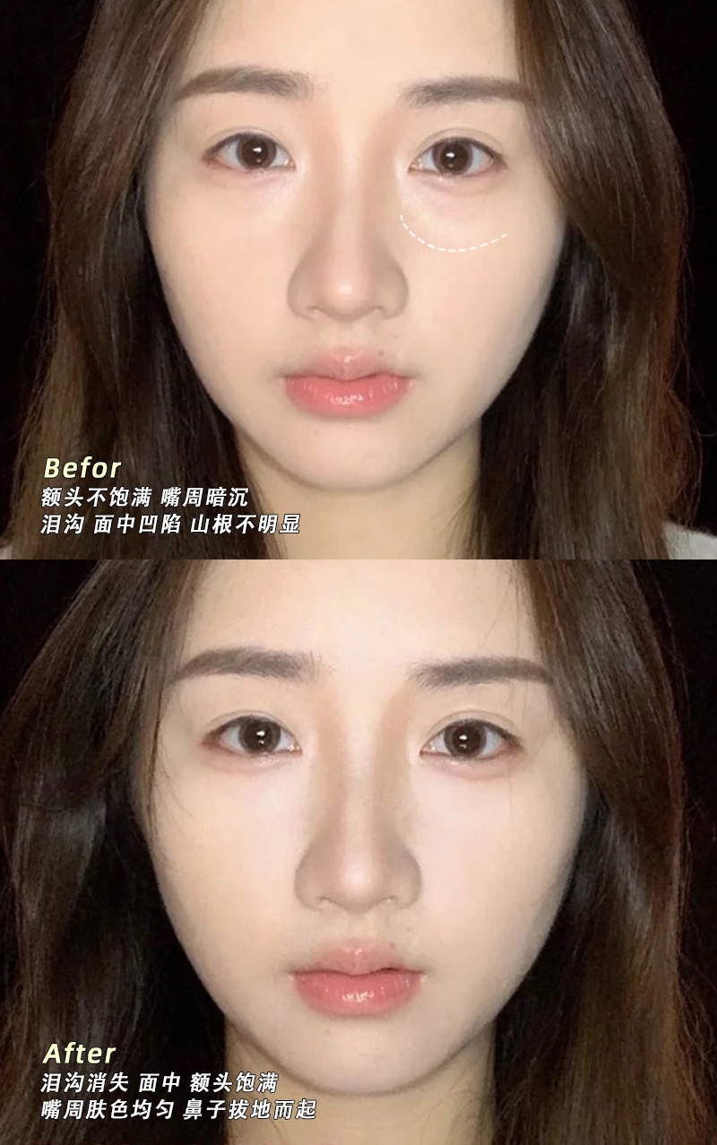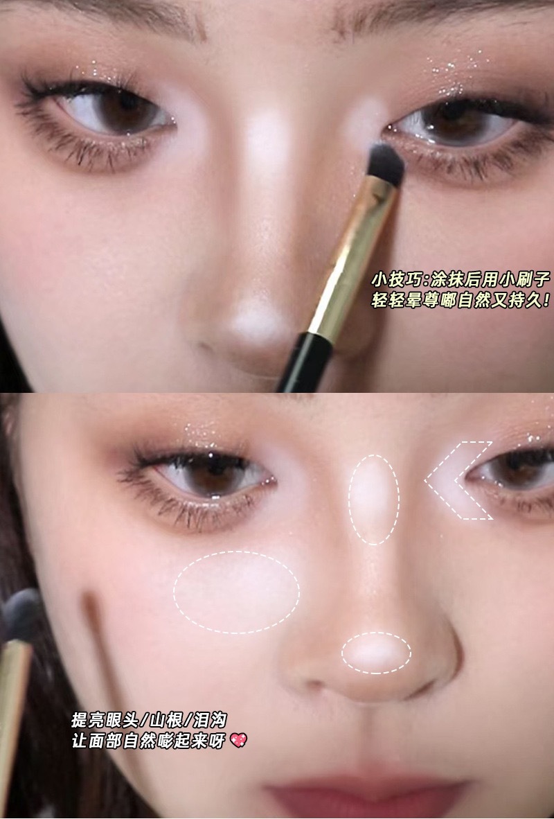 2色のハイライトの修理盤のつや消しのハイライトのつや消しの顔の双合の顔の中で寝ている蚕の目の頭は涙の溝の鼻の影の側を明るくします。