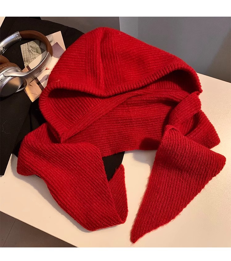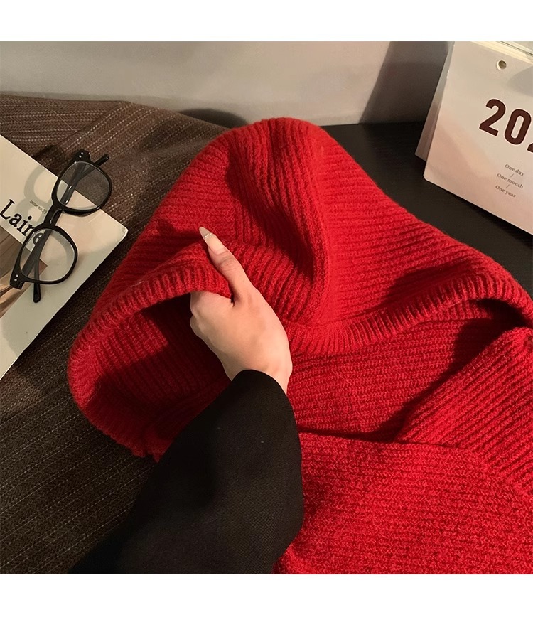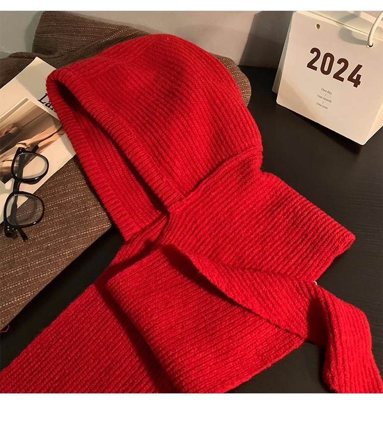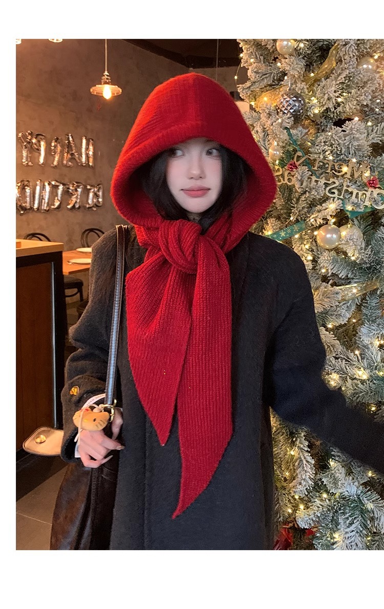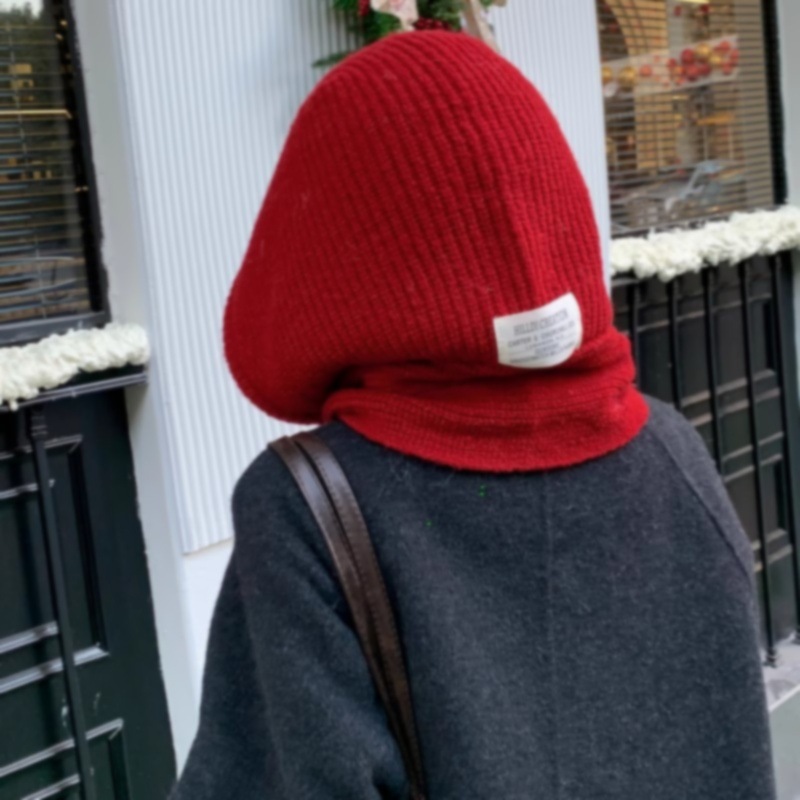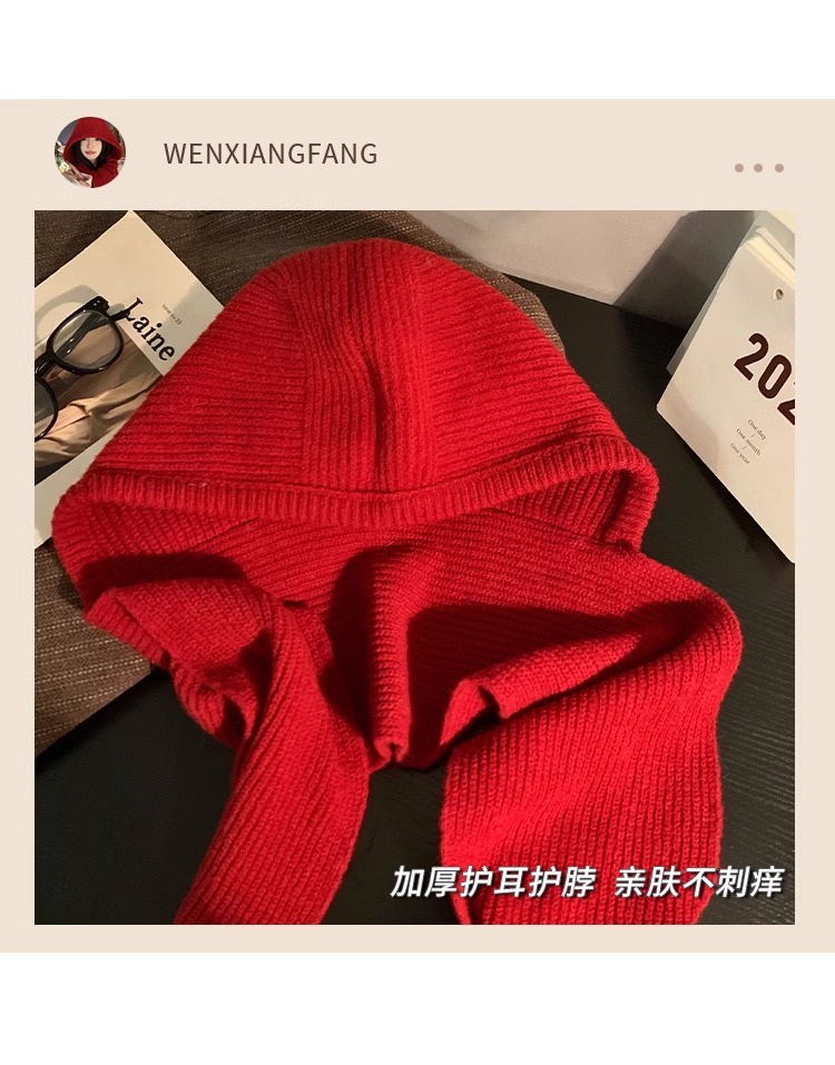 赤い目出し帽女性の秋と冬暖かいウールの帽子スカーフオールインワンフード付きスカーフニット帽子トレンディ