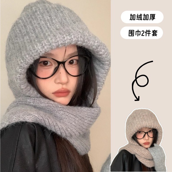 バラクラバ韓国風暖かい耳保護雷峰帽子外国貿易ニット帽子ウール帽子スカーフオールインワンフード付き