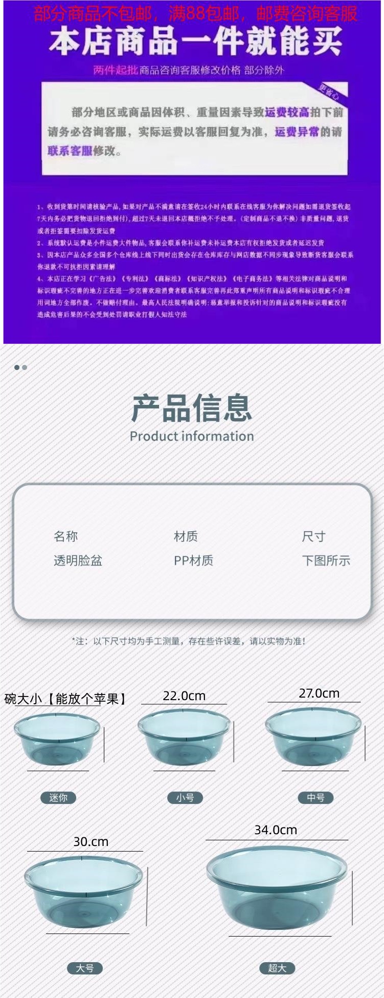 厚みのある洗面器プラスチック家庭用大、中、小洗濯洗面器学生寮足洗い桶ベビー洗面器
