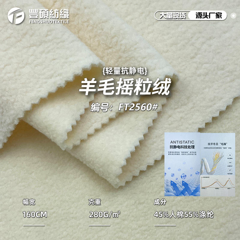 圣汇フリース生地280g羊小毛双ブラシ単揺フリース生地帯電防止保温生地