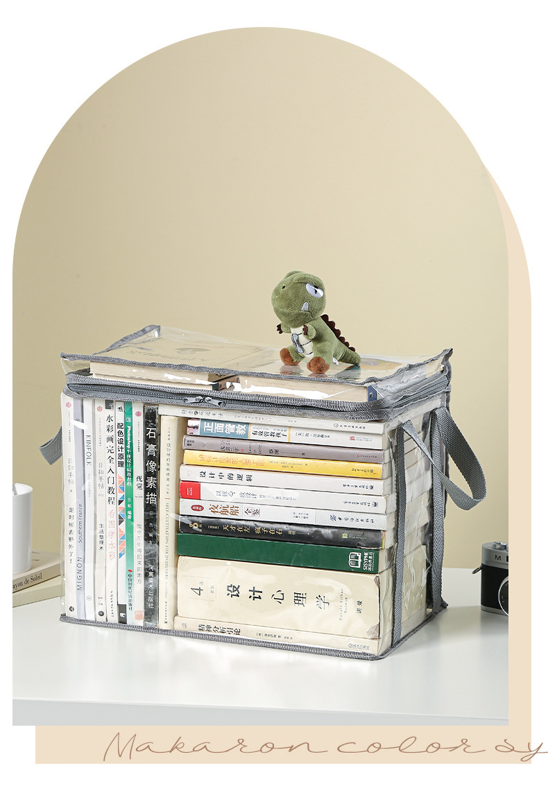 书本收纳箱学生教室放课本整理箱家用可折叠书籍储物盒透明收纳袋