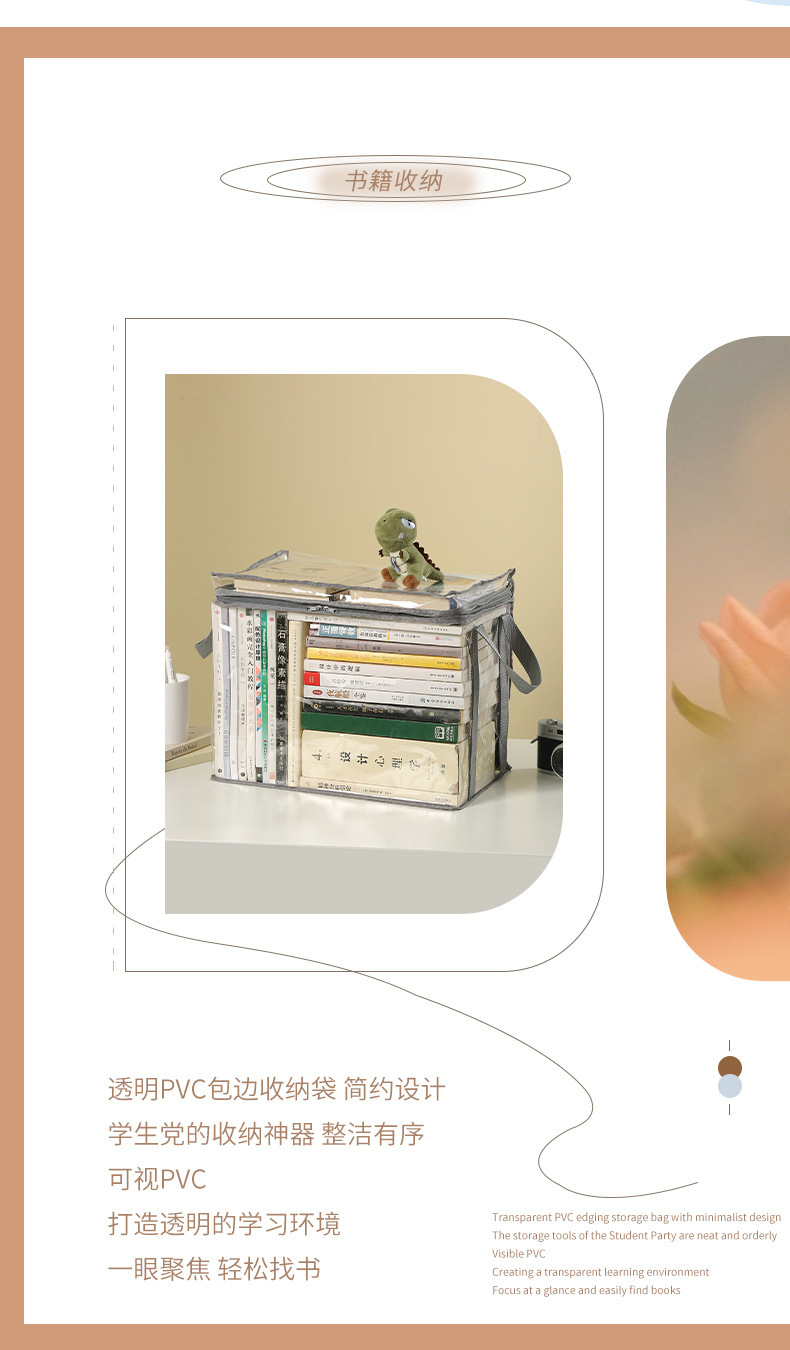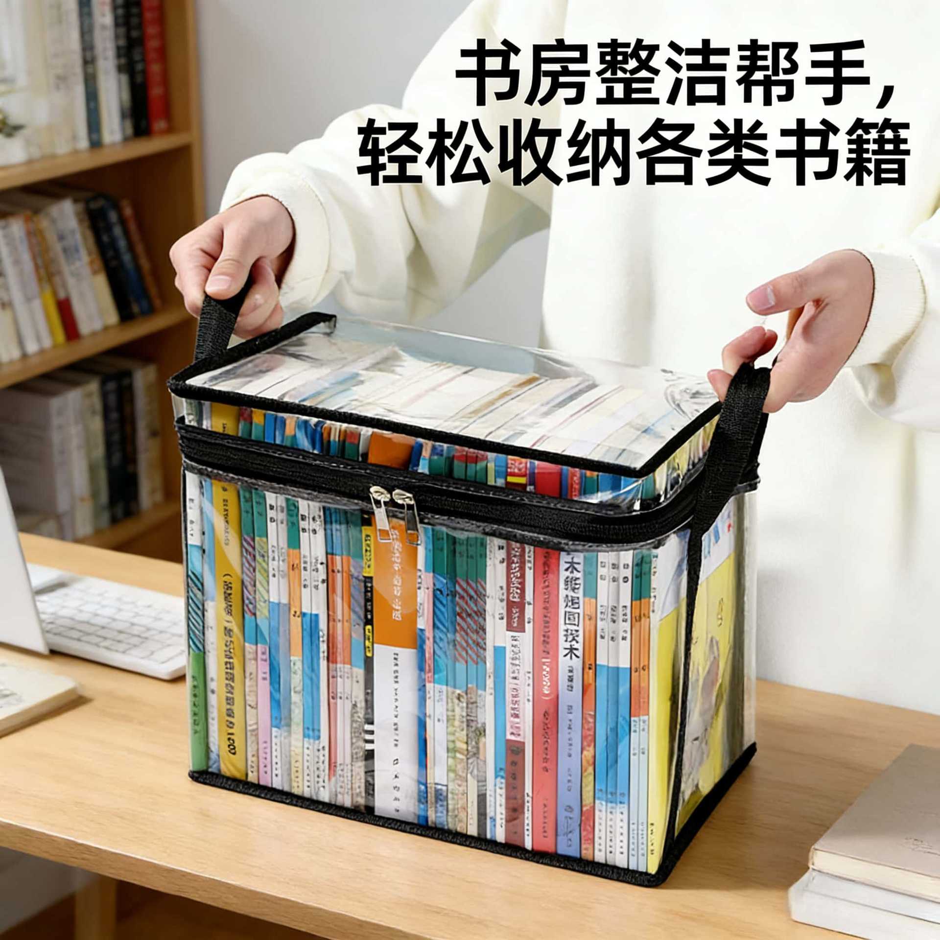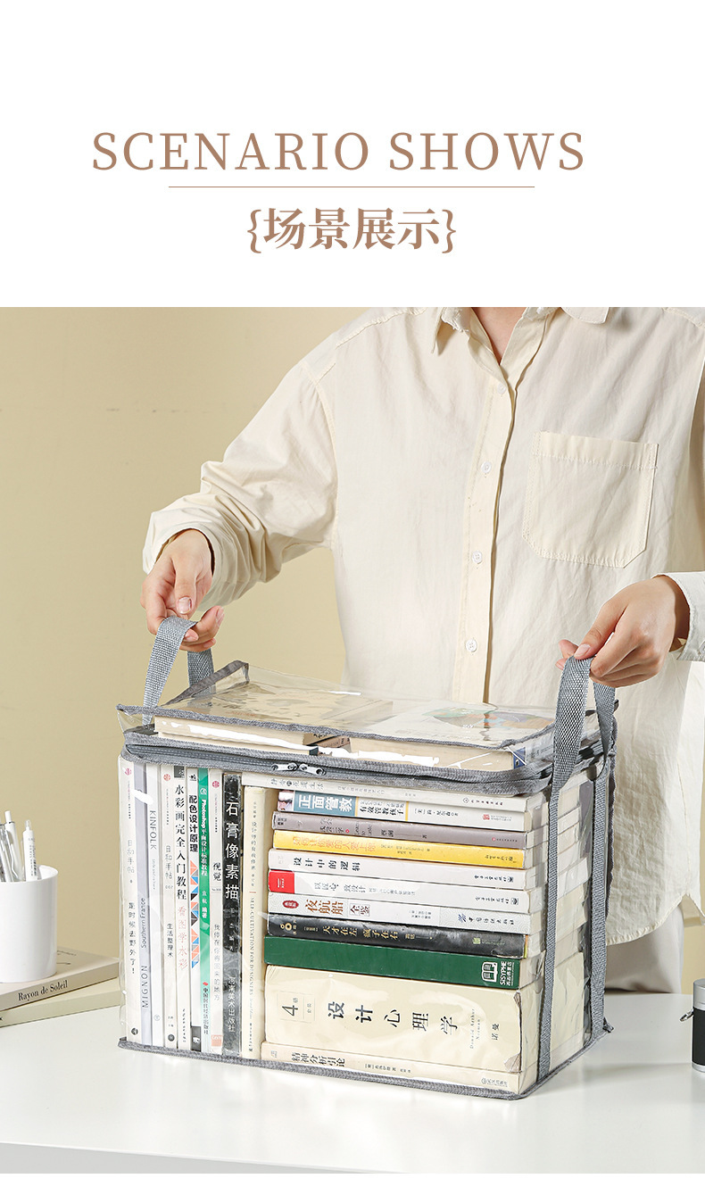 透明书本收纳盒防尘大容量加厚可折叠书架书籍整理课本收纳袋防水