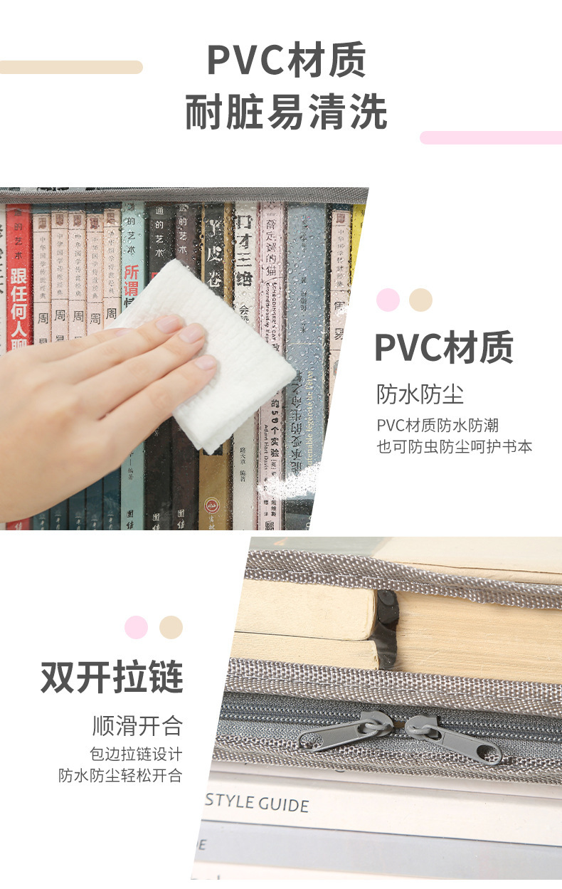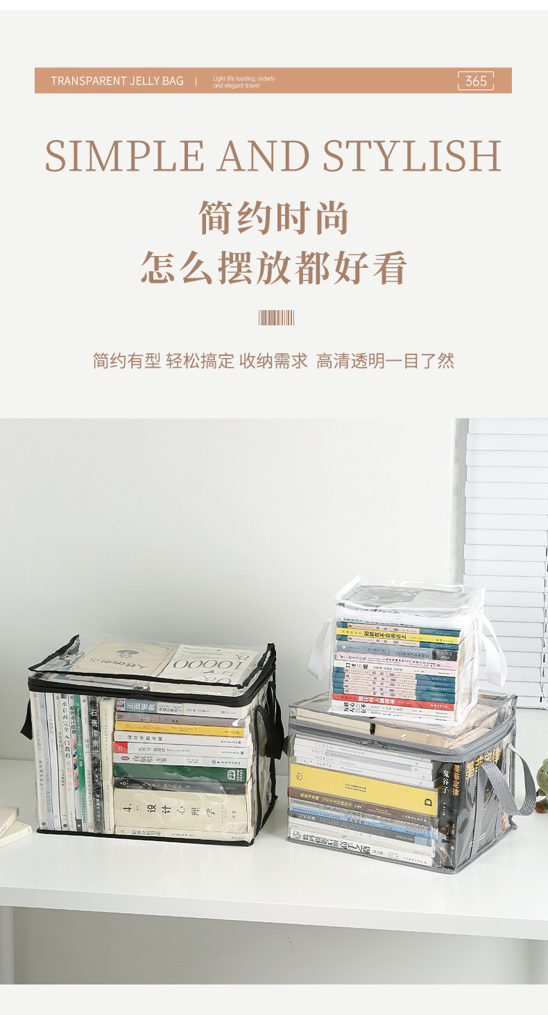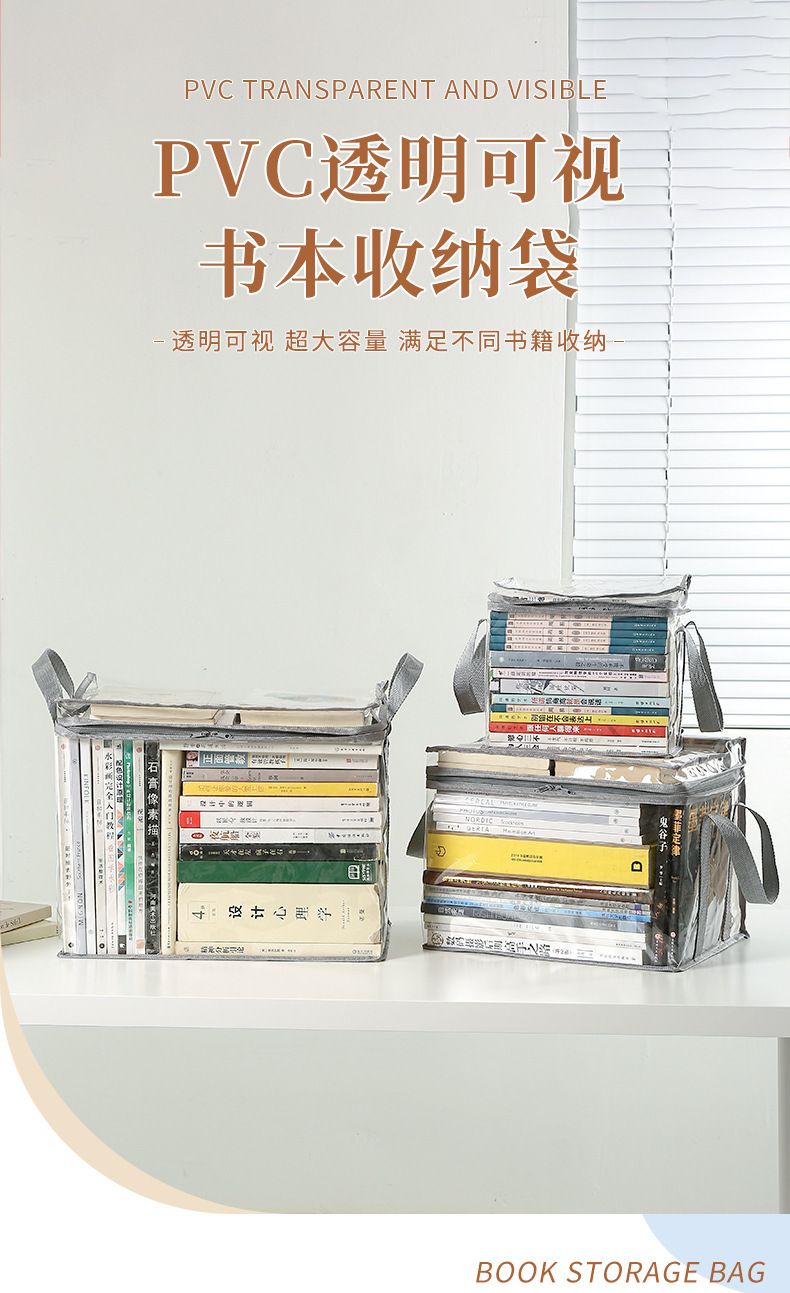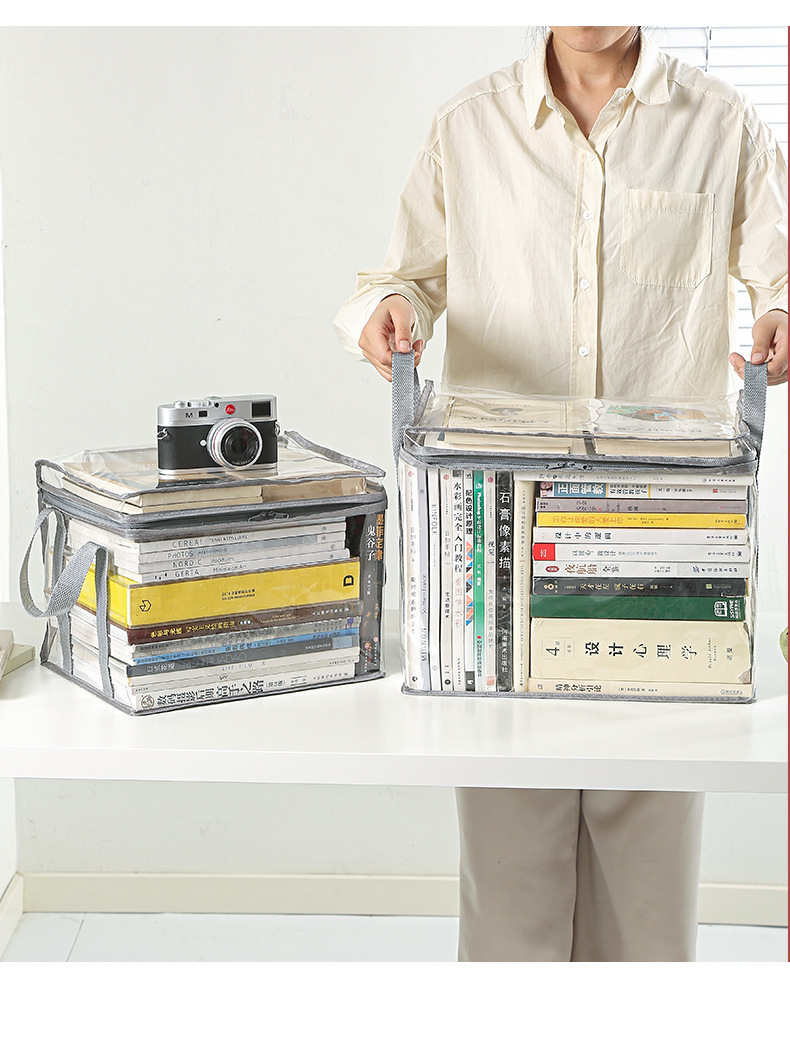 家庭用折りたたみ式書籍収納袋、学生用本棚整理防塵袋、書籍袋、防湿透明PVC透明バッグ