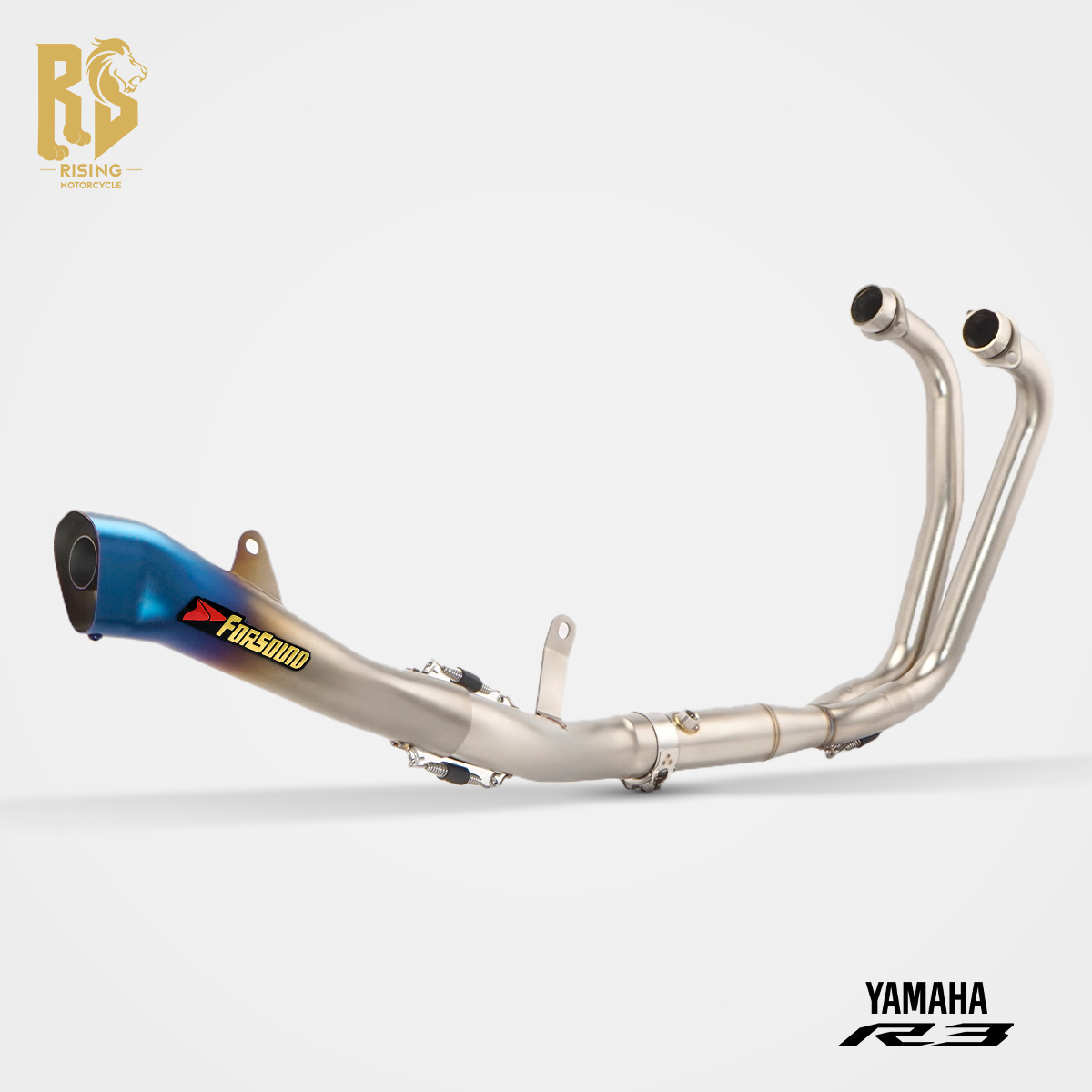 RSオリジナルはヤマハR3改造バイクの排気ステンレスに適合します。GPテーパーオレンジマウスフルセクション