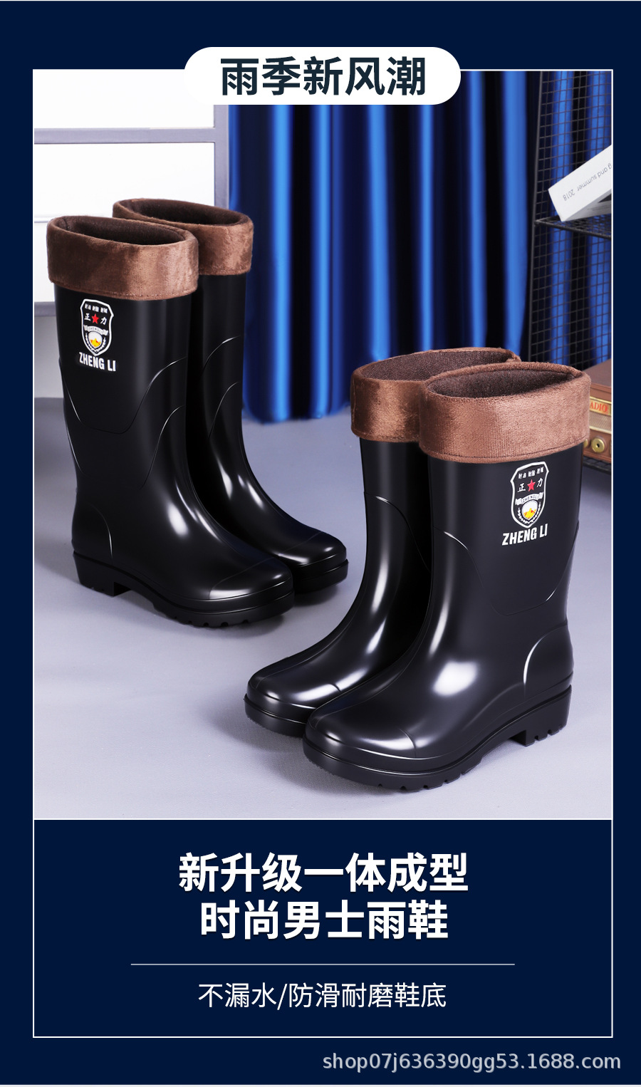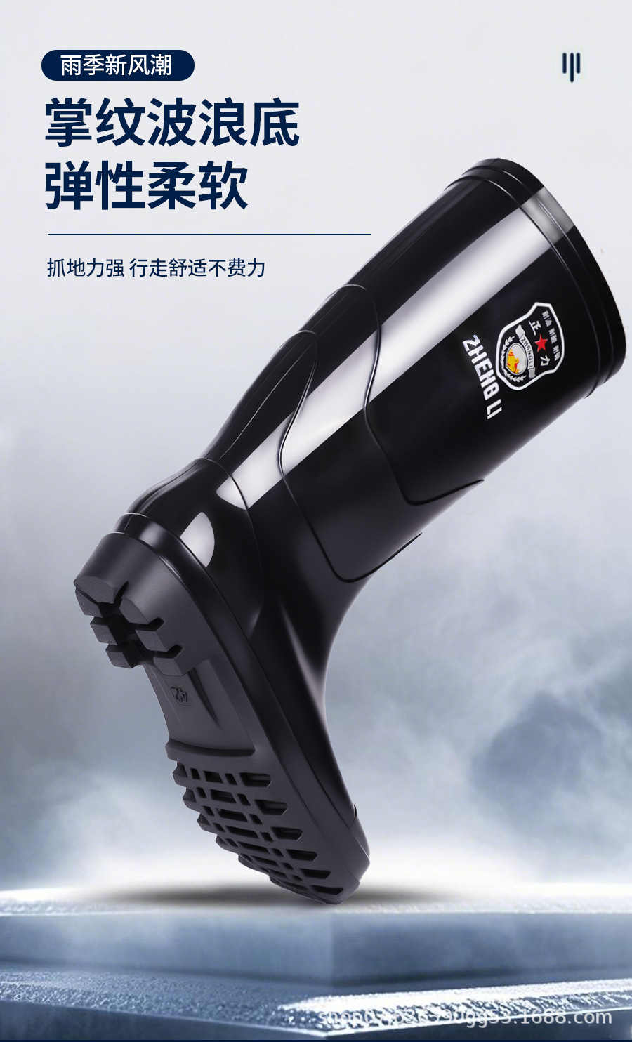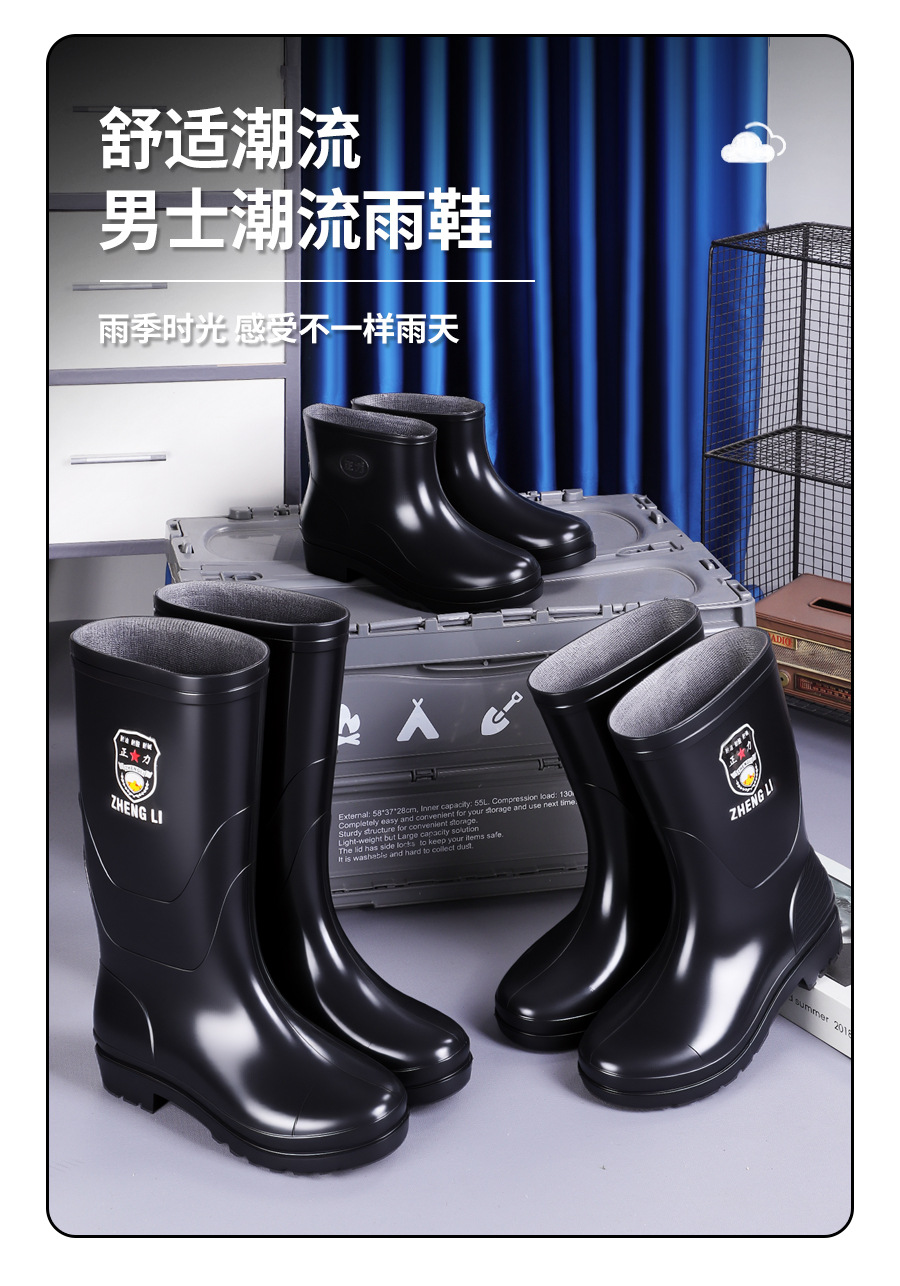 正力工厂批发雨靴长筒防水防滑加厚耐磨防油碱劳保中筒雨靴工厂批