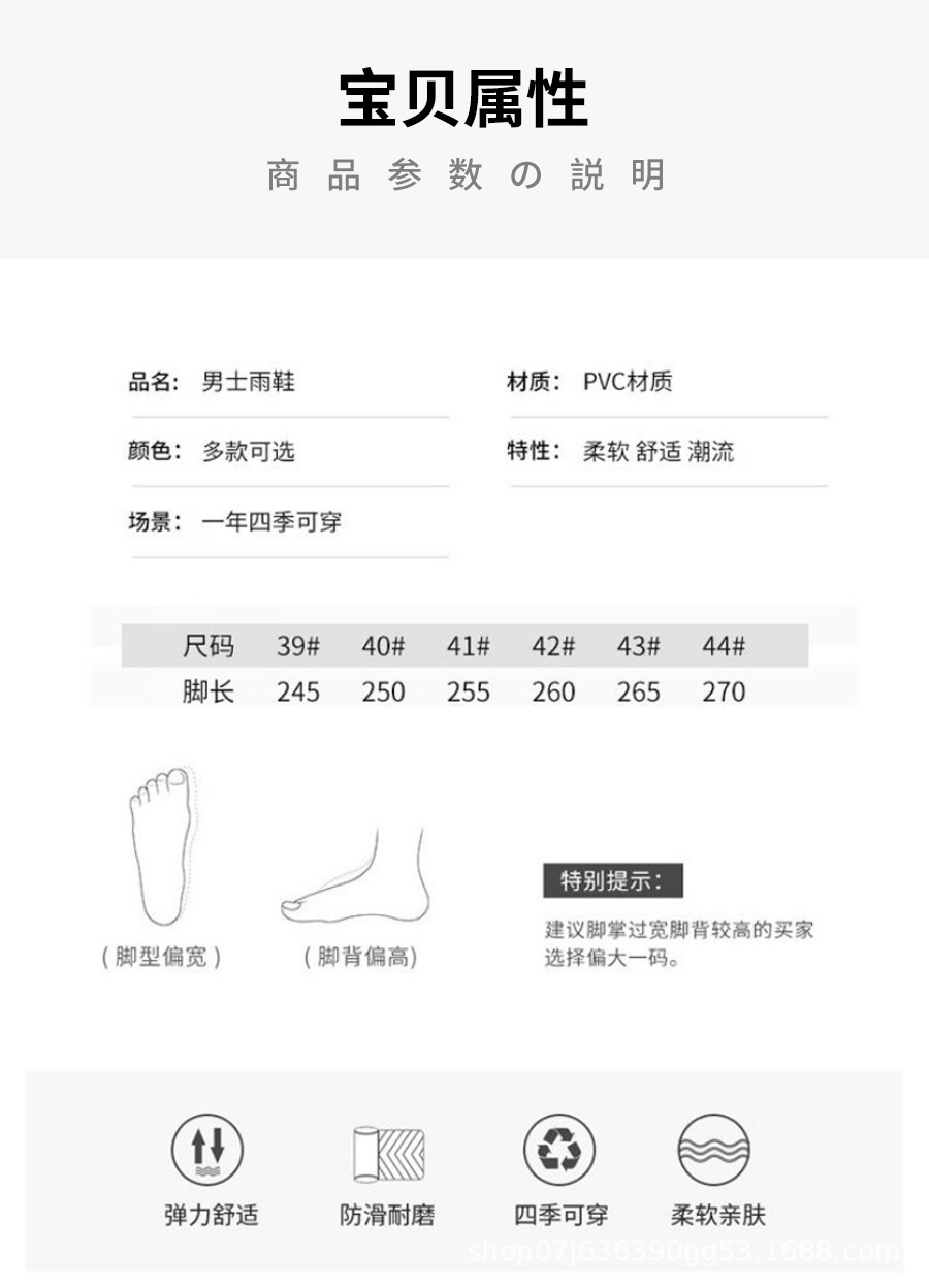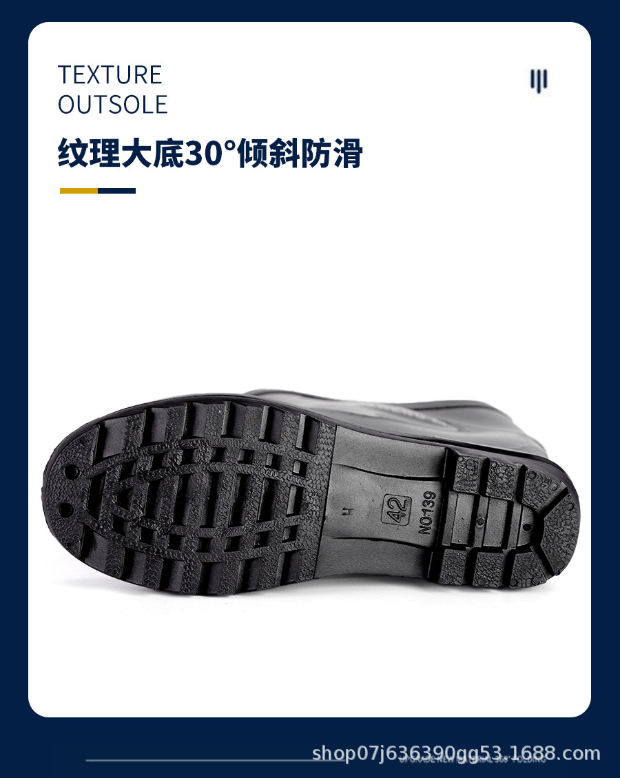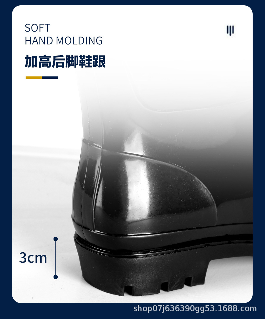 雨靴男性モデルpvc滑り止め防水靴男性黒色厚い耐摩耗性労働保護工事現場ゴム靴雨靴卸売り