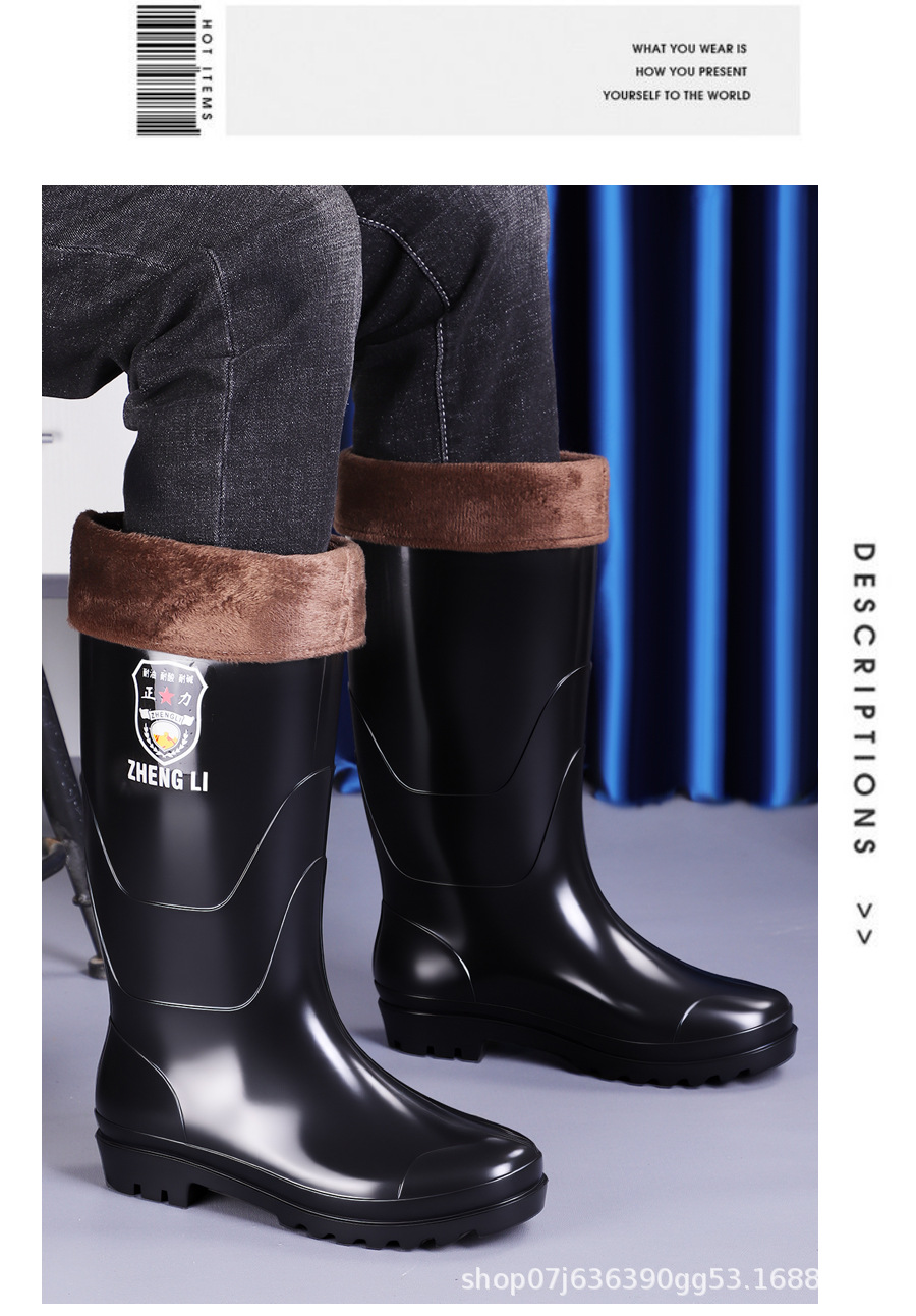 2025新型高筒加毛労働保水靴男性滑り止め牛筋底に耐摩耗性防水工事現場ゴム靴を厚くする