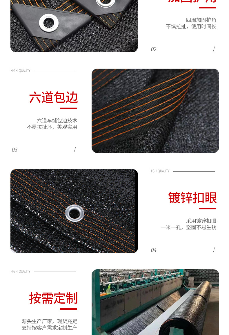 屋外中庭日よけネット、黒い日よけネット、暗号化された日焼け止めネット、厚みのある日よけネット、エッジパンチング日よけネット