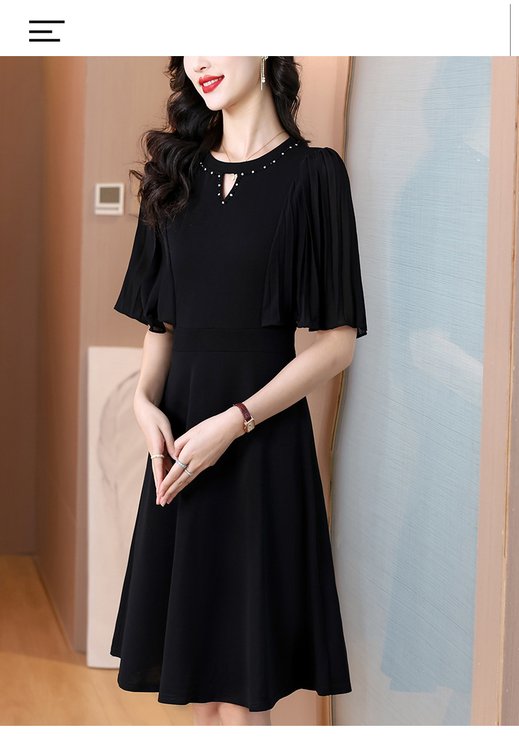 gwe7603 黒フレンチスタイルフリルドレス女性の 2025 夏ミッドレングスエレガントレディーススカート