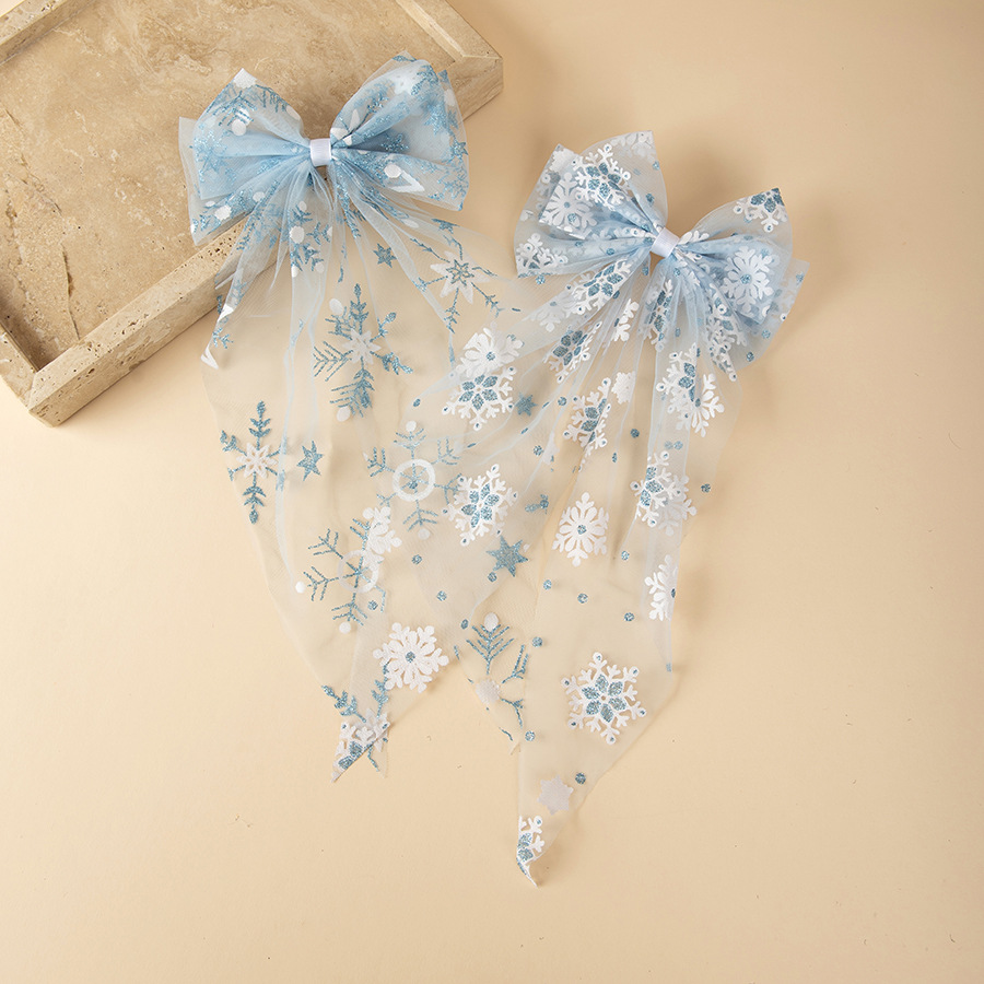跨境热销蕾丝蝴蝶结发夹简约百搭网纱长飘带少女发卡雪花鸭嘴夹