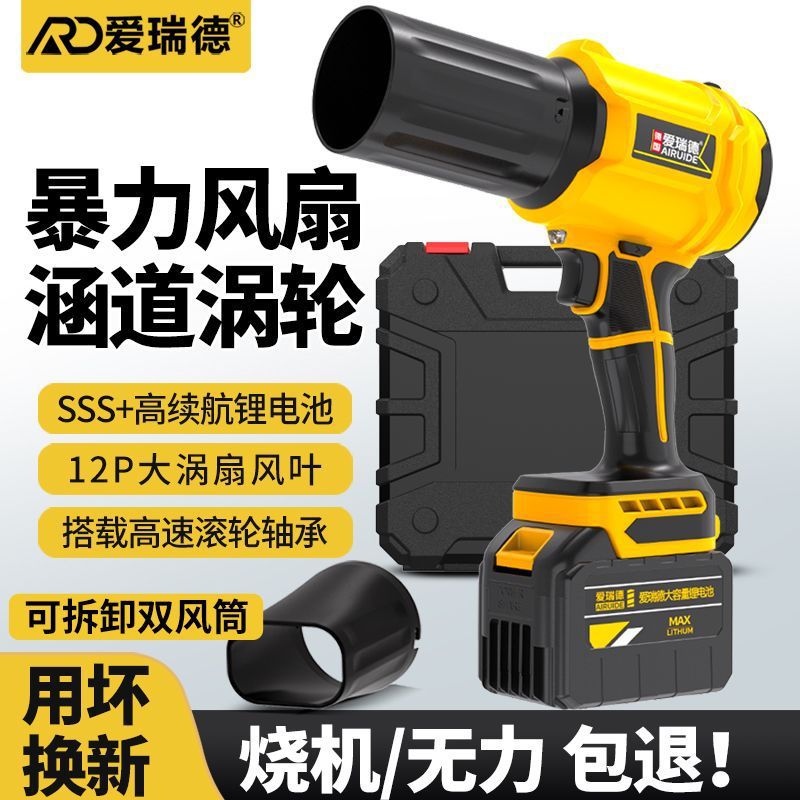 跨境涵道锂电暴风机工业级涡轮风扇吹灰除尘枪车载吹雪水树叶神器
