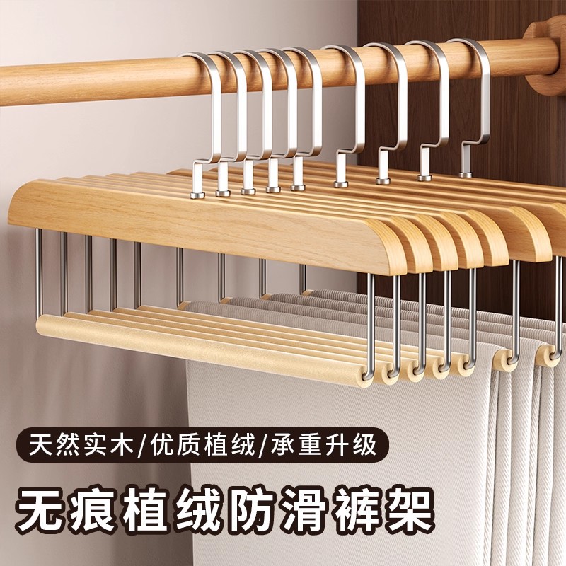高级木质裤架植绒无痕裤架子围巾裙子西裤收纳专用实木挂裤子衣架