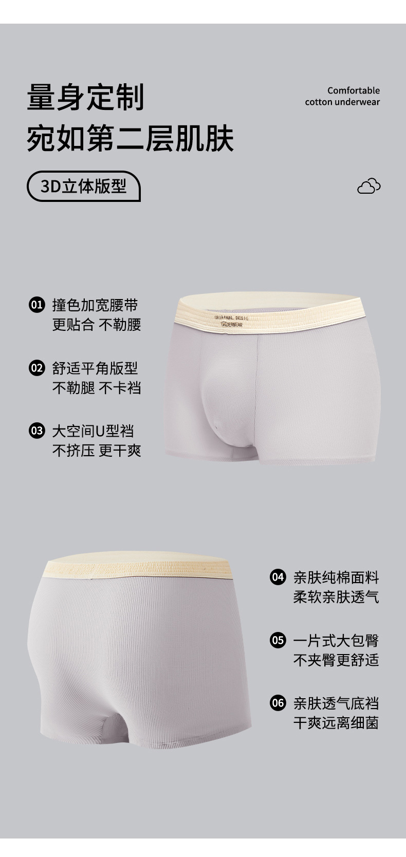 男性下着ベビーコットンジャカードソフトワックス状抗菌快適通気性ルーズカラーコットンメンズピュアコットンボクサーブリーフ卸売