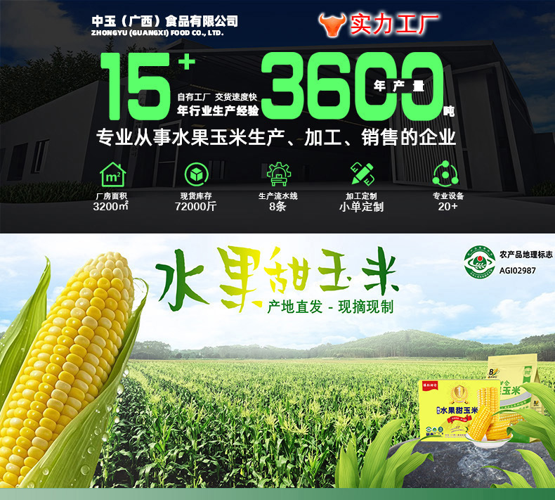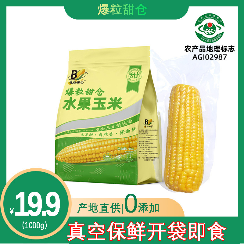 広西チワン族自治区横県産の甘いトウモロコシ、調理不要のフルボックス、新鮮なフルーツトウモロコシ、学生の食事代わりに、真空包装、卸売、ランドマーク商品
