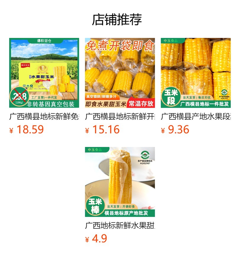 广西横县产地新鲜玉米开袋即食水果专用速食真空现摘免煮整箱