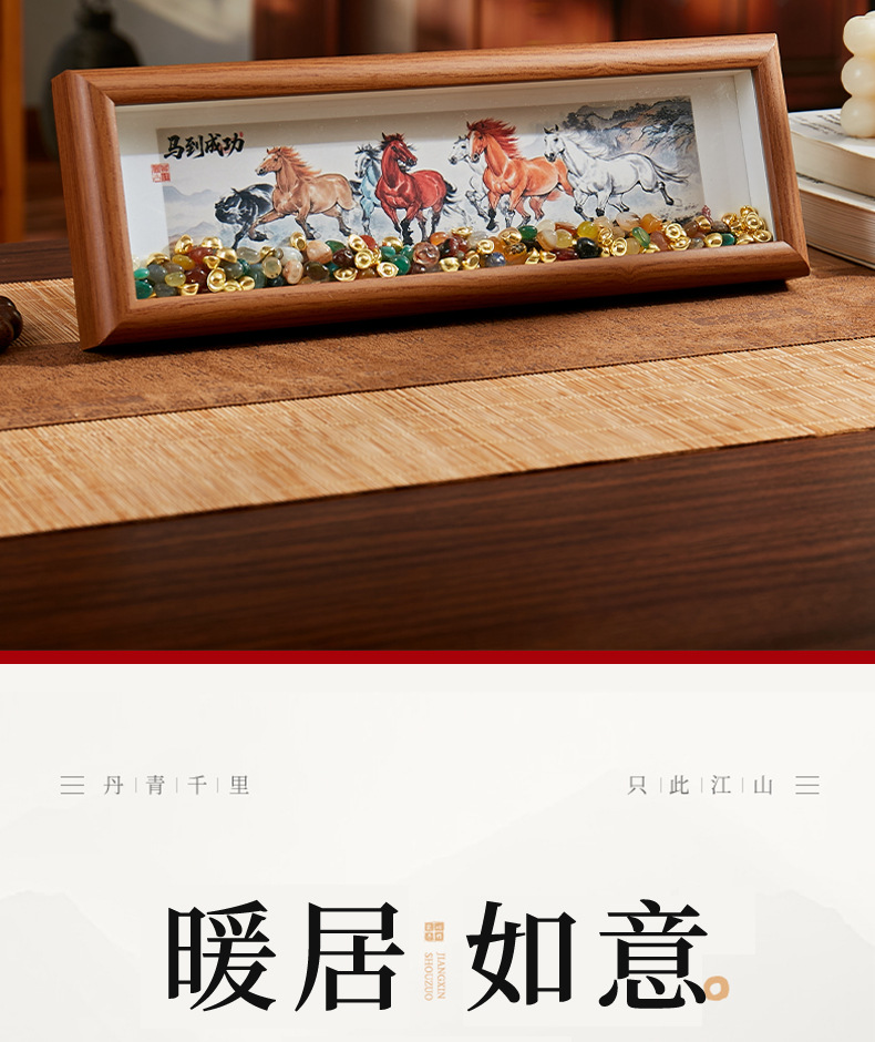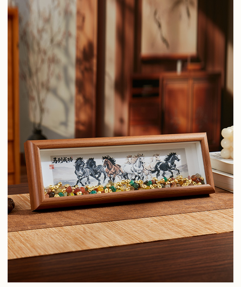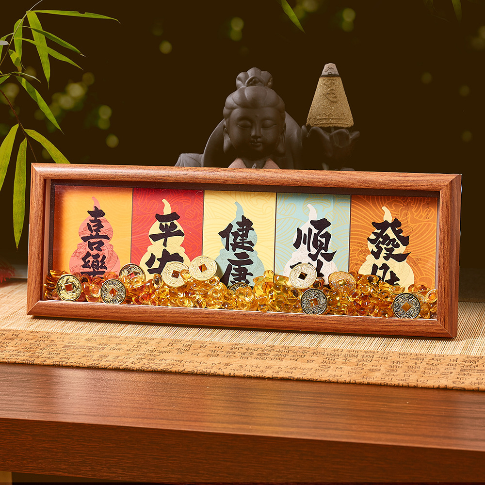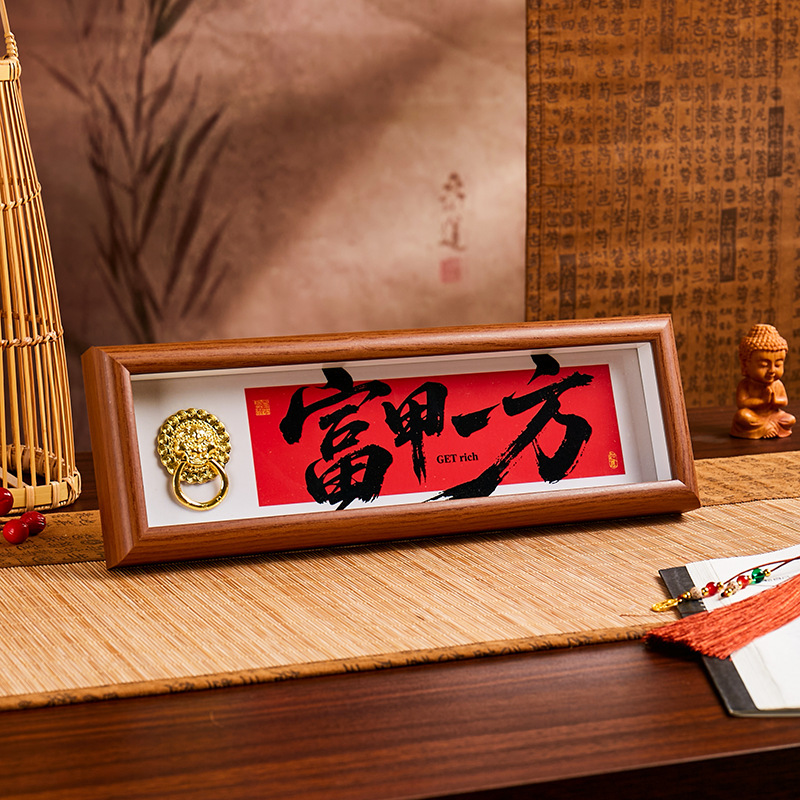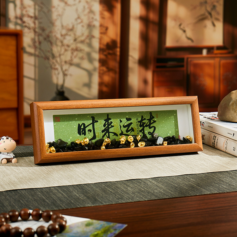 ​ 富と幸運の書道フォトフレーム装飾品新しい中国風無垢材フレームオフィス富と幸運の風水テーブル