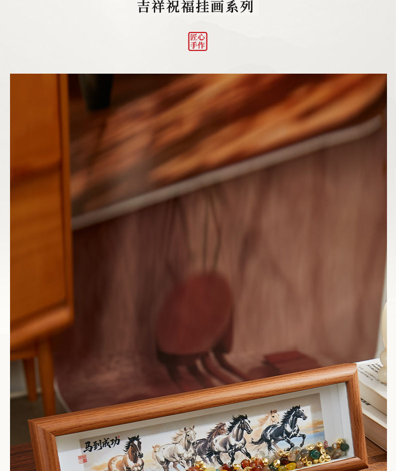 顺风顺水天官赐福手串木质相框摆件礼物客厅办公室桌面摆件摆台