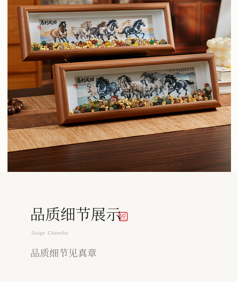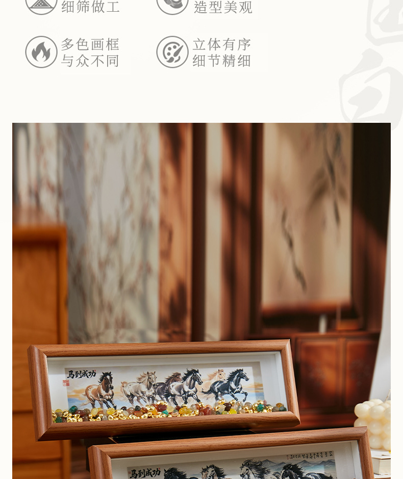 马到成功国画加七彩水晶石金元宝家居装饰摆件礼品招财招运工艺品