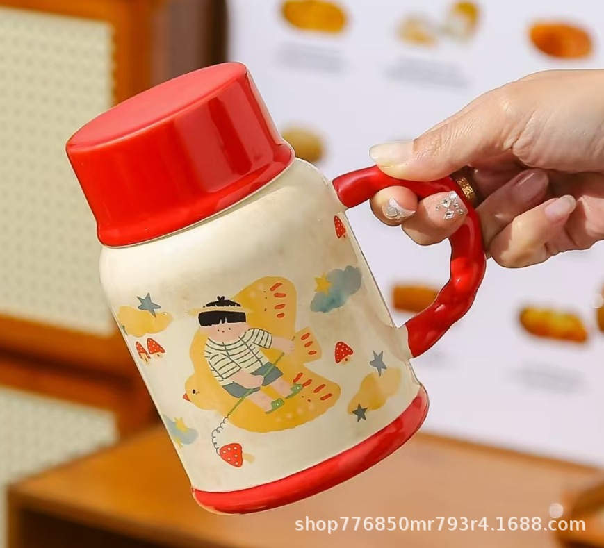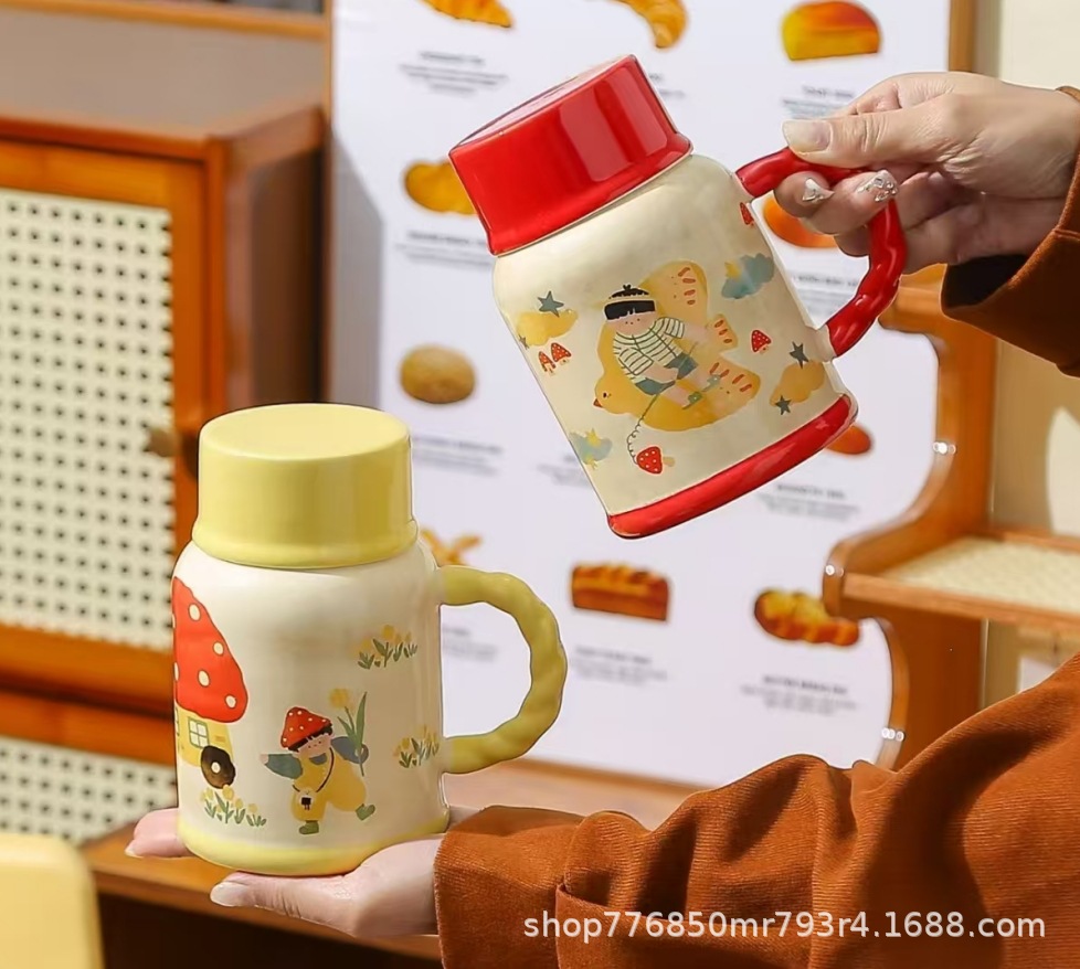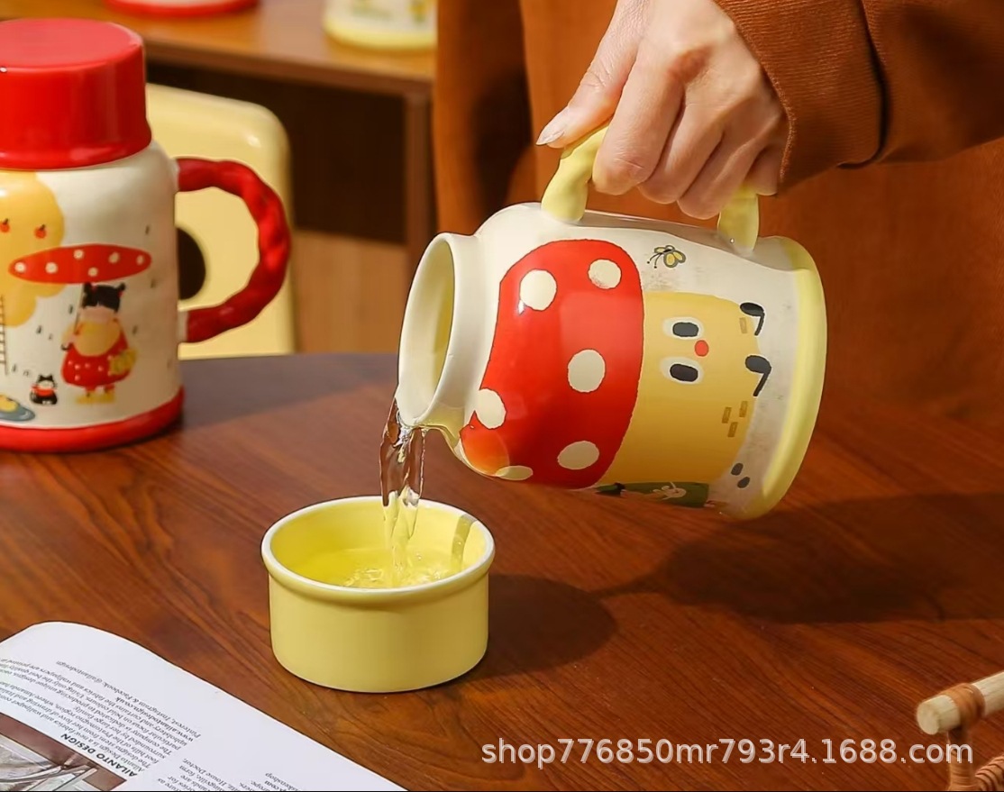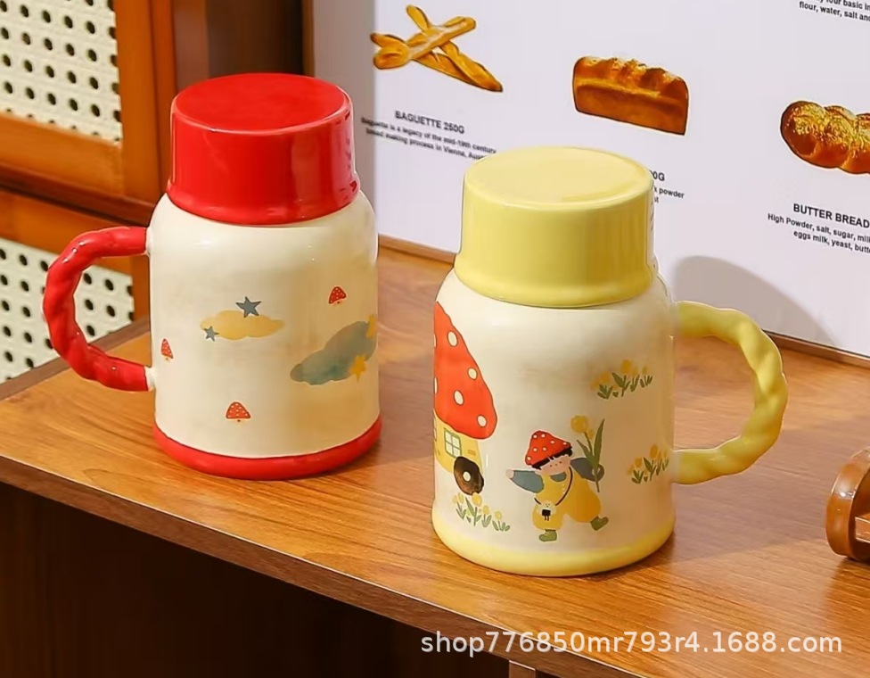 佳事达 童趣蘑菇乐园水壶杯JSD380陶瓷杯+陶瓷盖家用礼品批发