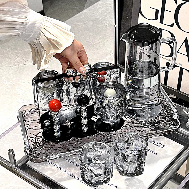 水具套装高级感扭扭玻璃杯家用喝水杯客厅耐高温茶杯待客杯具套装