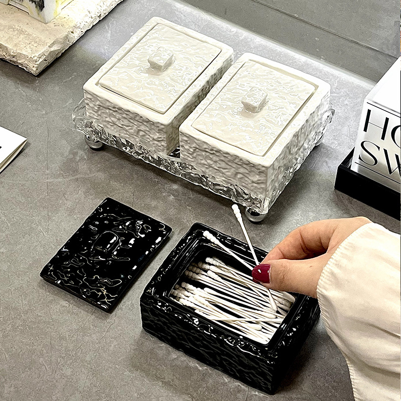 ハイエンドセラミック綿棒ボックス家庭用ハイエンドクリエイティブ多機能防塵つまようじとデンタルフロスツーインワン収納ボックス