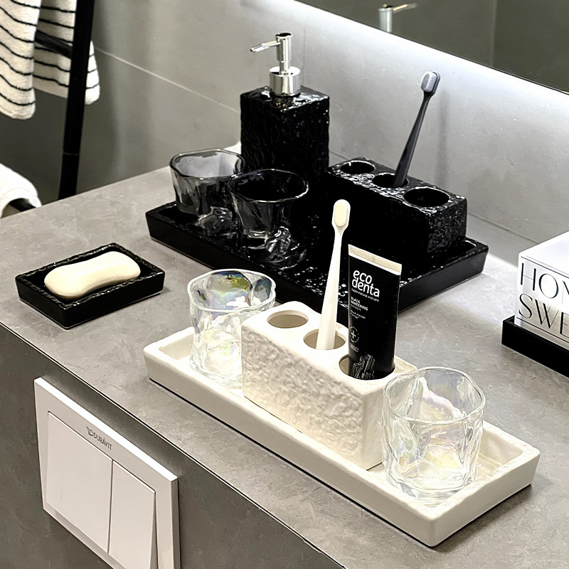 北欧简约卫浴五件套浴室洗漱套装牙杯套件卫生间置物架样板间托盘