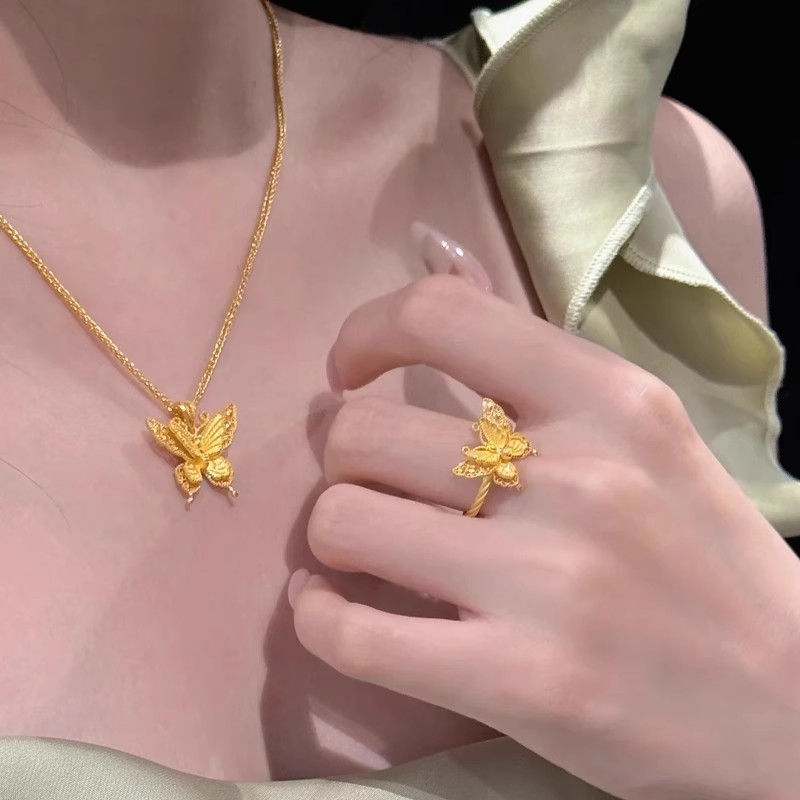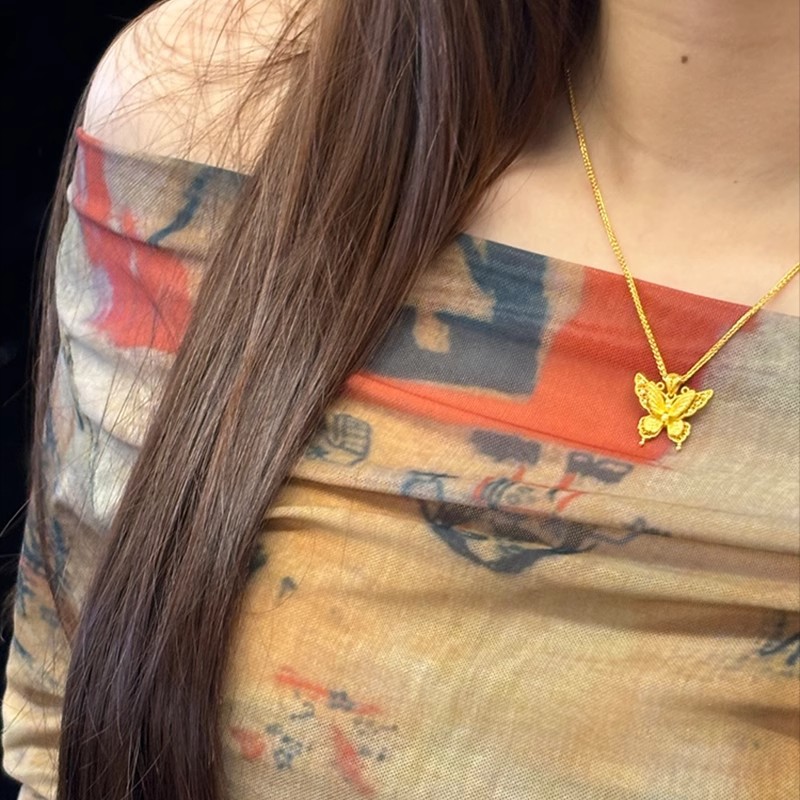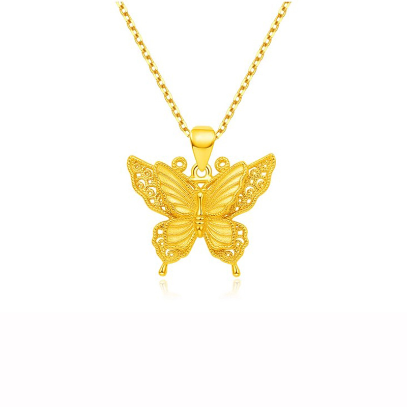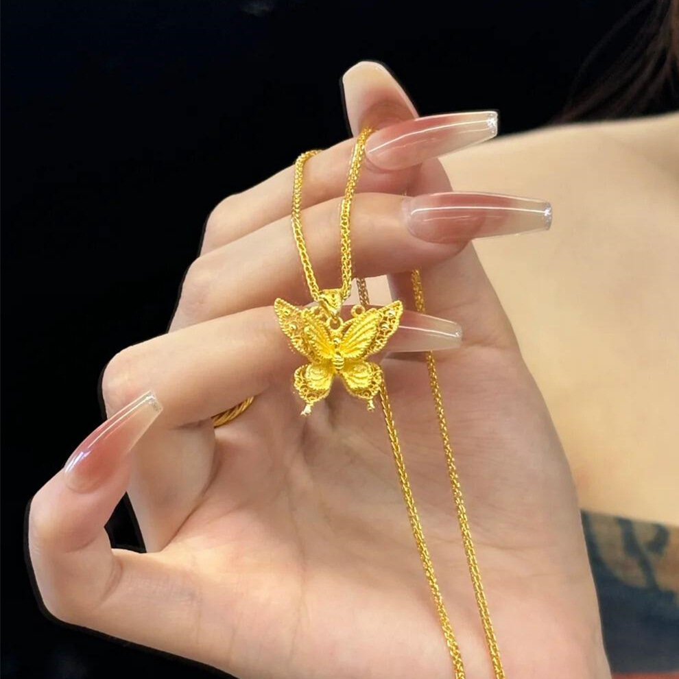 ゴールデンシルク羽蝶中空フィリグリー蝶ネックレス 2025 新しいライト高級レトロ新中国風の鎖骨チェーンジュエリー卸売