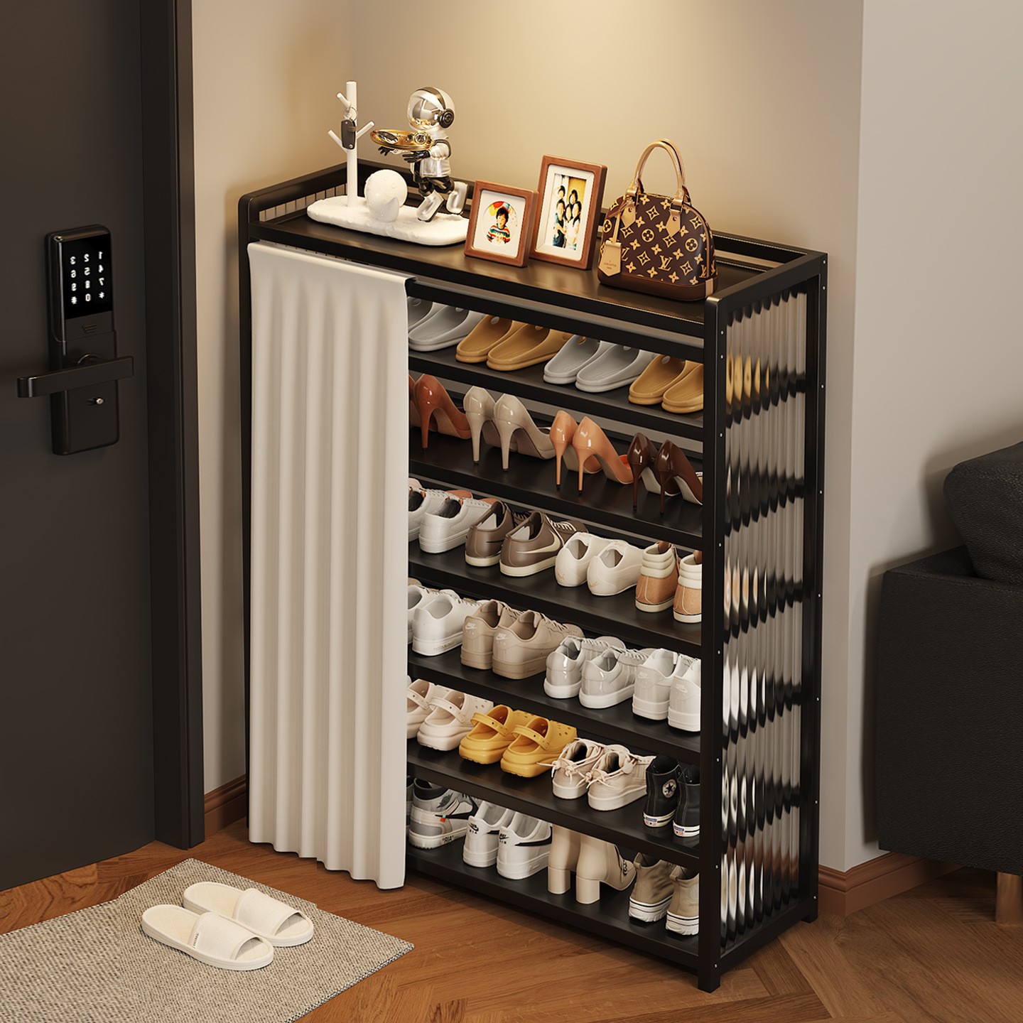 玄関用靴収納ラック、家庭用屋内靴キャビネット、多層玄関収納アーティファクト、省スペース、寮賃貸住宅