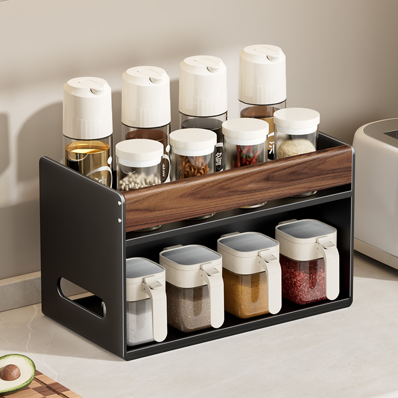 クルミキッチン調味料収納ラックカウンタートップ家庭用調味料塩瓶オイルポットコンビネーションパッケージ収納ラック