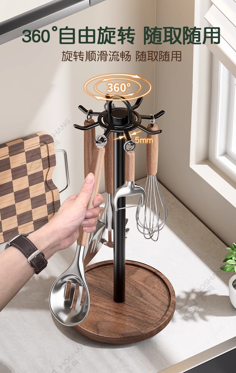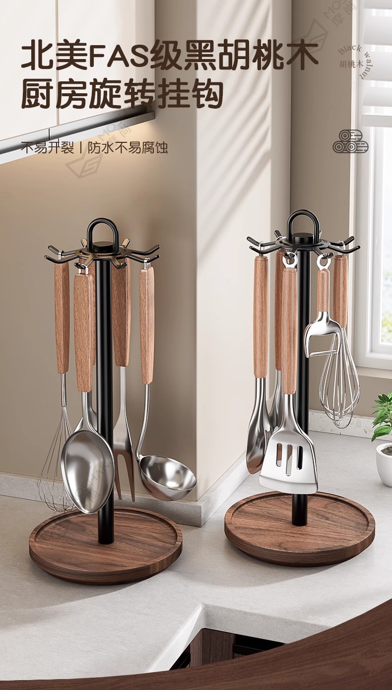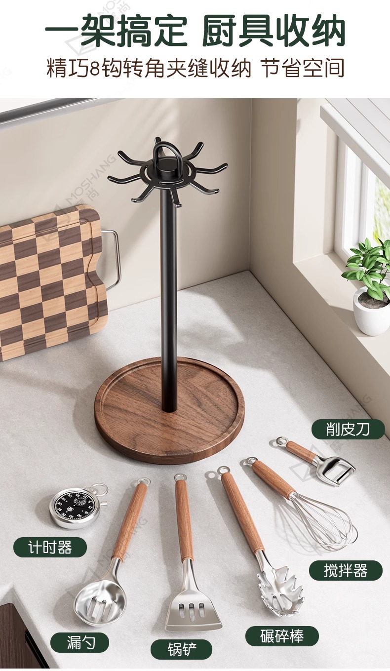 ウォールナットキッチン回転フックカウンタートップスパチュラ収納ラック吊りスプーンザルスパチュラキッチン用品収納ラックアーティファクト