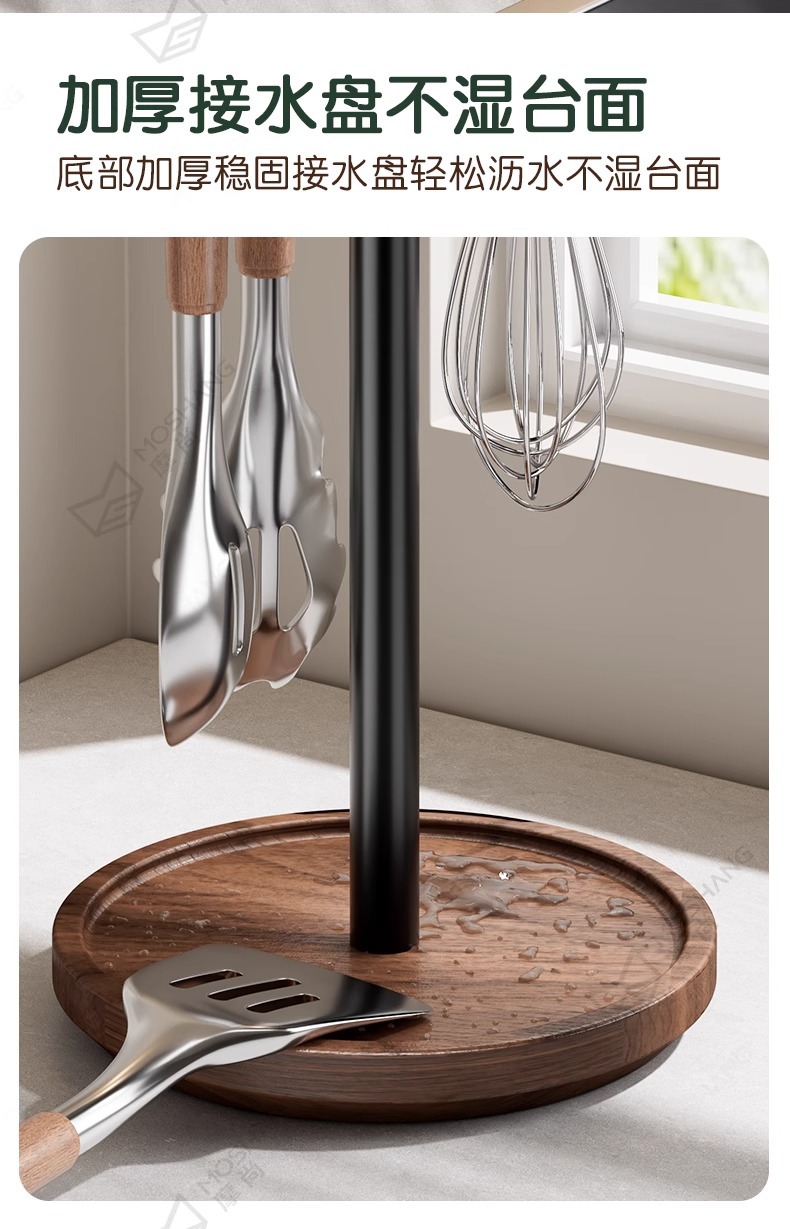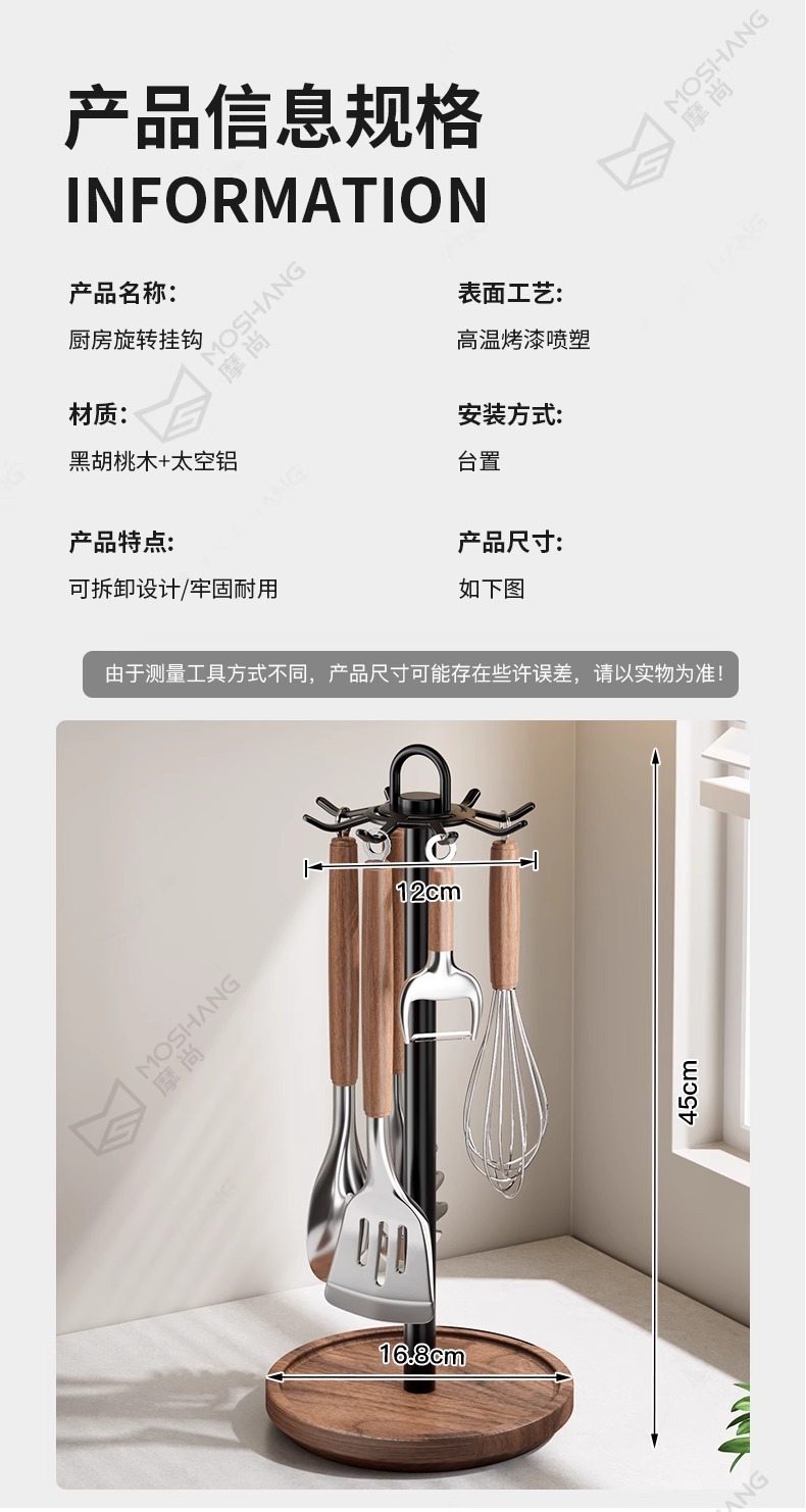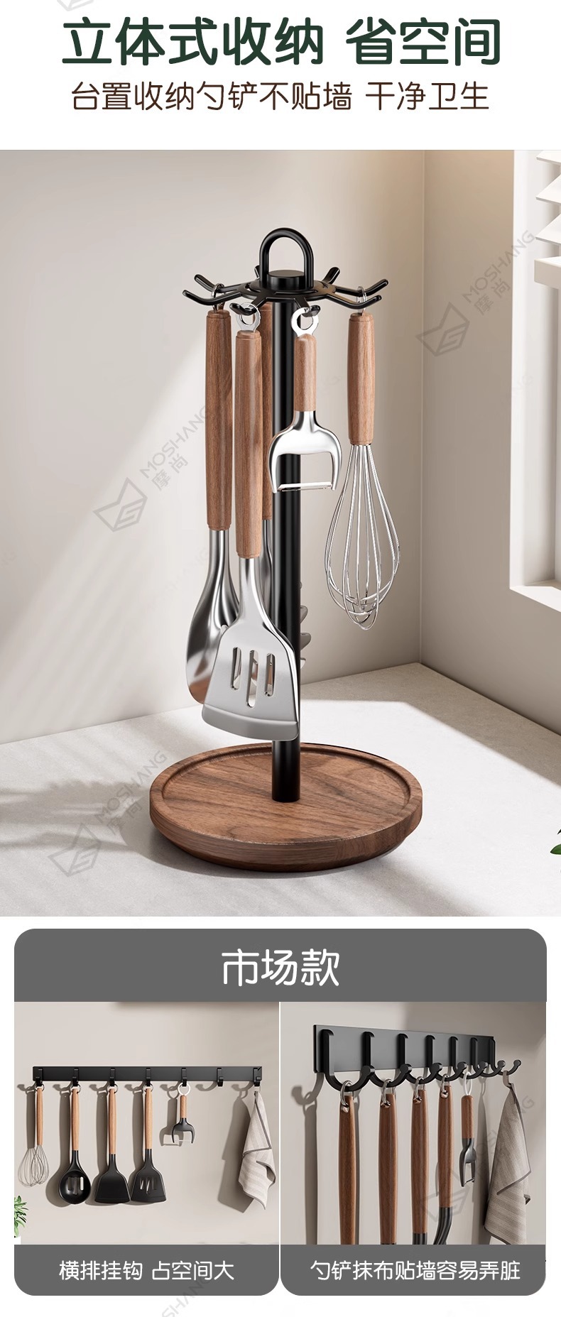 ウォールナットキッチン回転フックカウンタートップスパチュラ収納ラック吊りスプーンザルスパチュラキッチン用品収納ラックアーティファクト