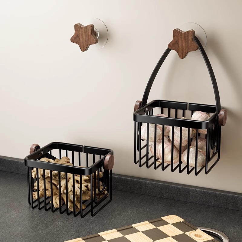 胡桃木は穴を開けないで台所の姜にんにくを収納します。