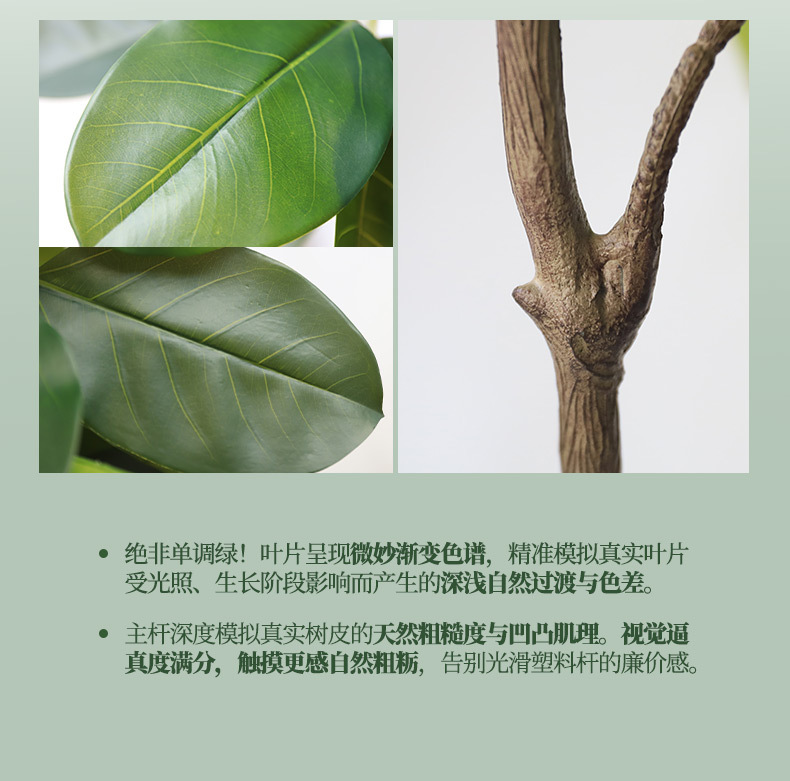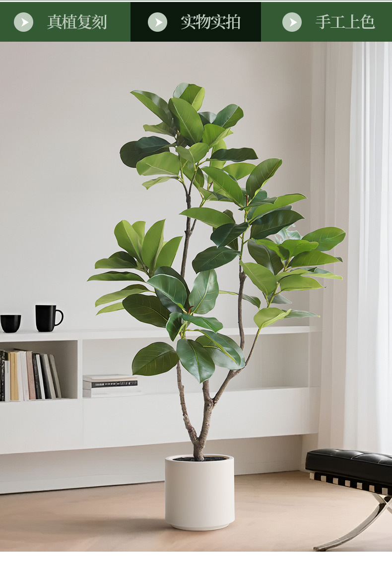 大型客間床置き置物室内ソファーテレビキャビネット横の偽植物黒金剛ゴム樹シミュレーション緑植