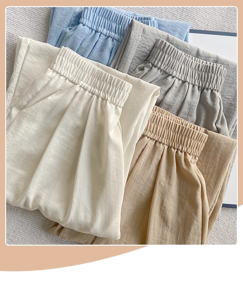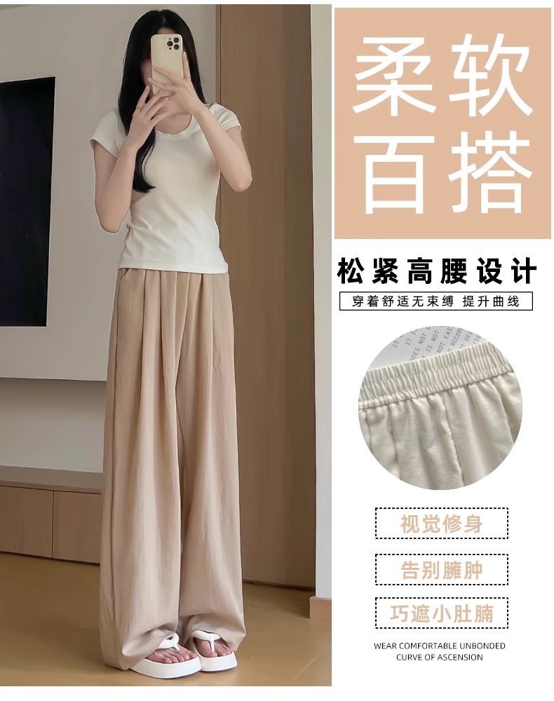 レースの透かし彫りの広い足のズボンの女性の夏の2025新型の高い腰のまっすぐな筒の垂れ下がった感のカジュアルな小さい背の氷のシルクの涼しいズボン