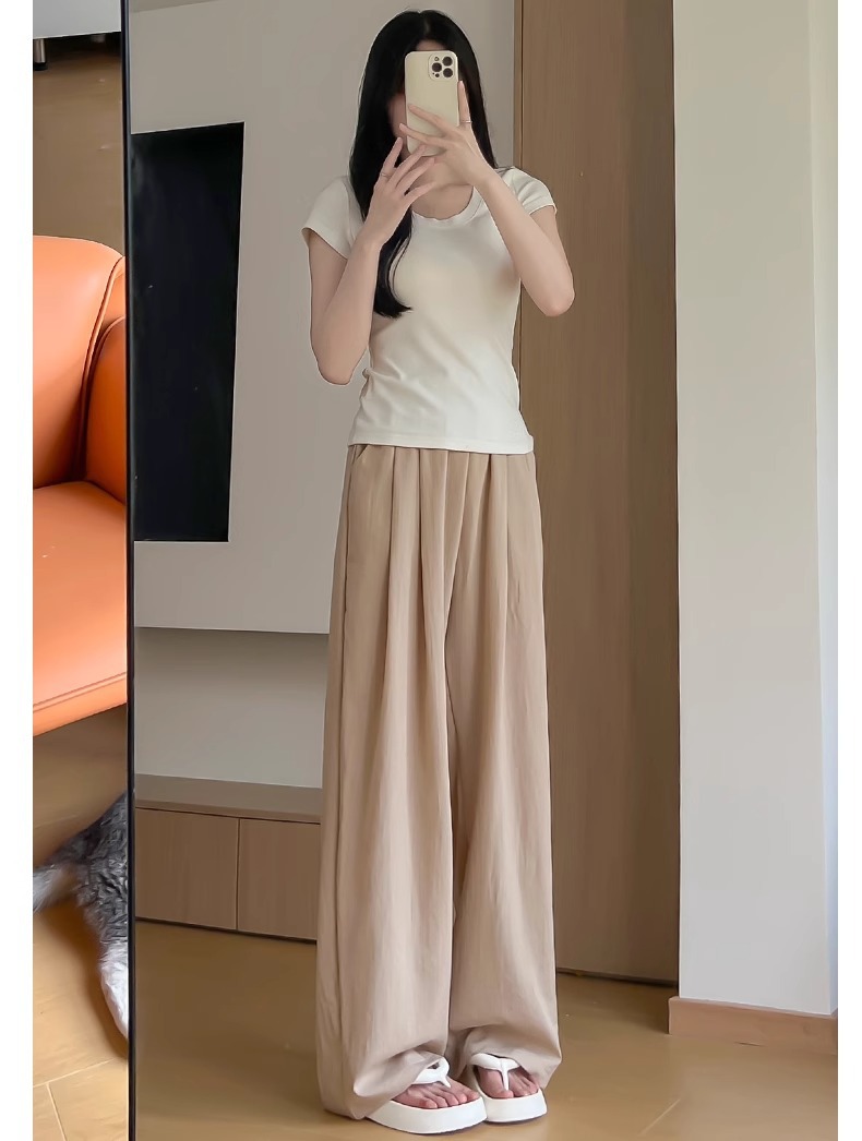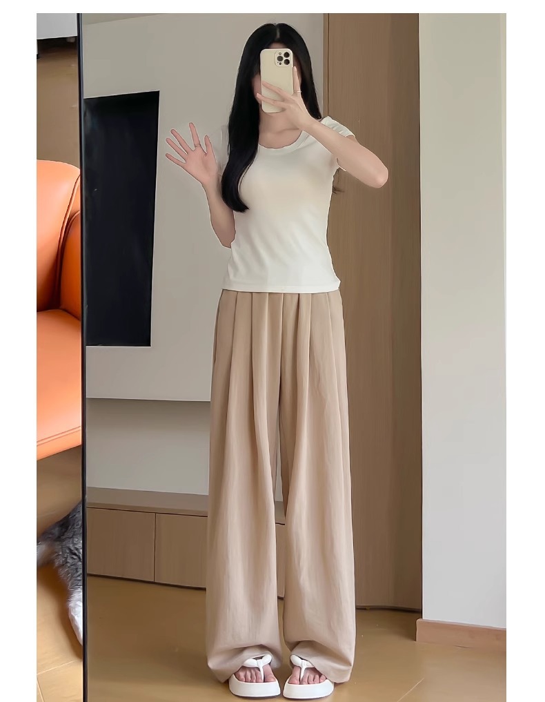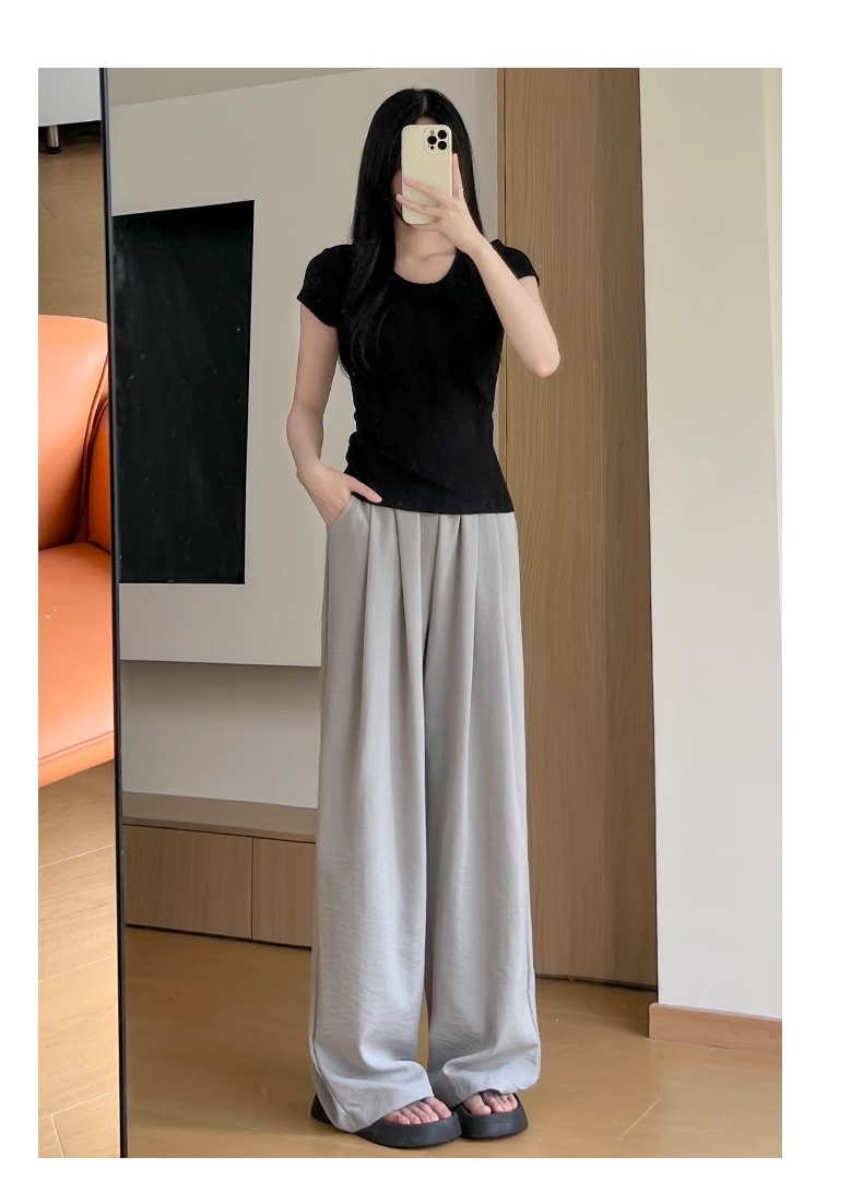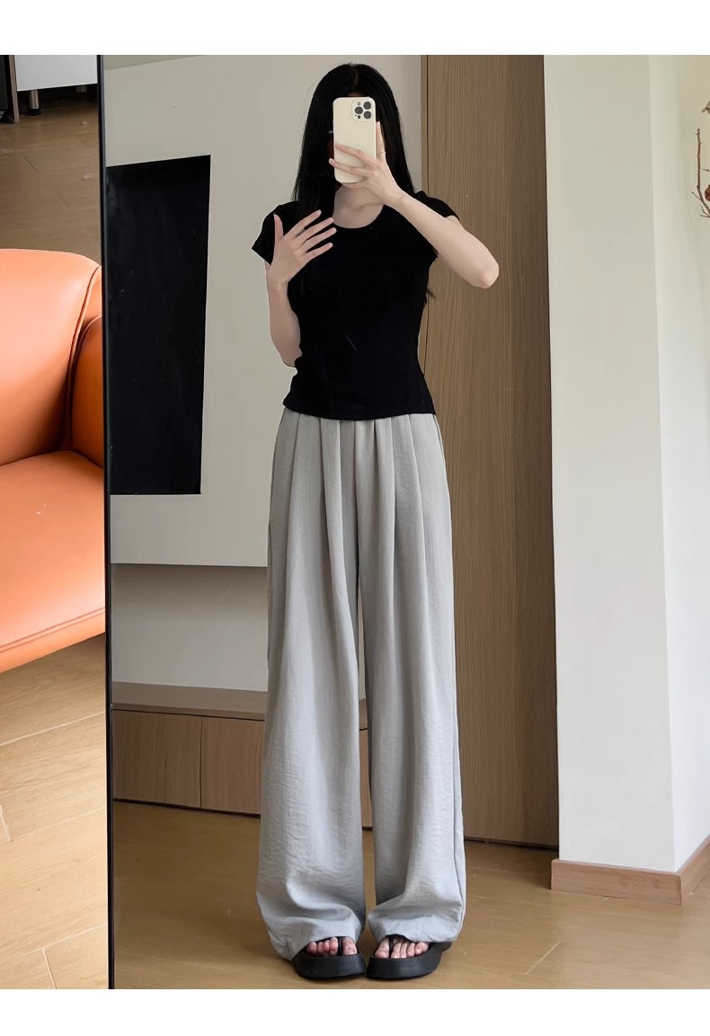 乳芙のスーツの広脚のズボンの女性の2025春の新型の高腰はやせていてゆったりしています。