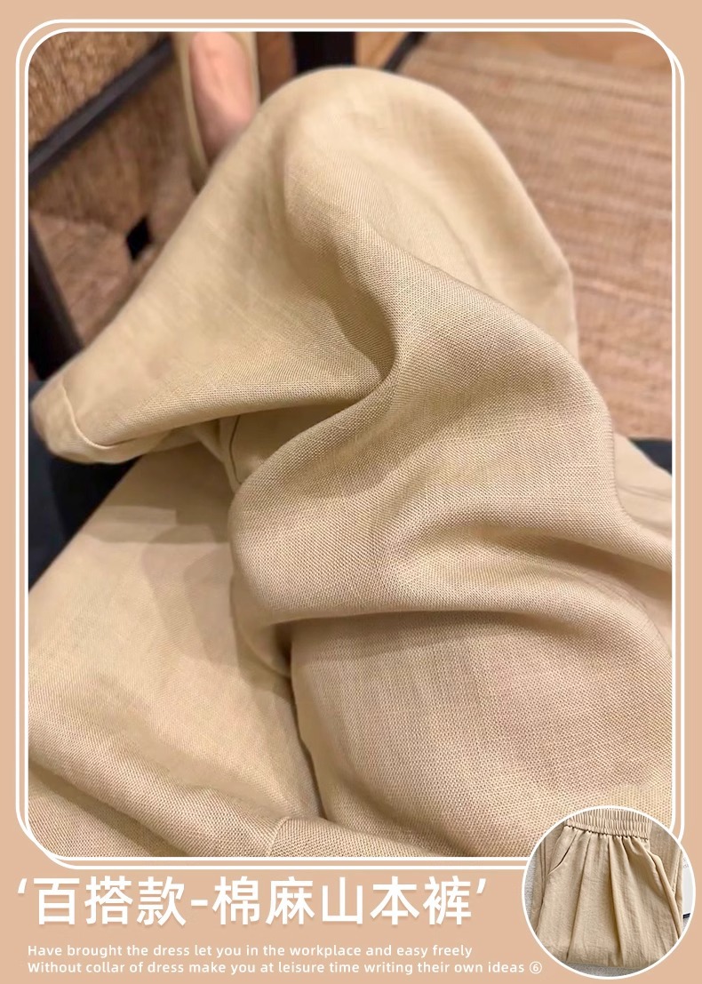 カーキコットンリネン山本パンツ女性の夏の2025新しいハイウエストスリムルーズストレート怠惰なリネンカジュアルパンツ