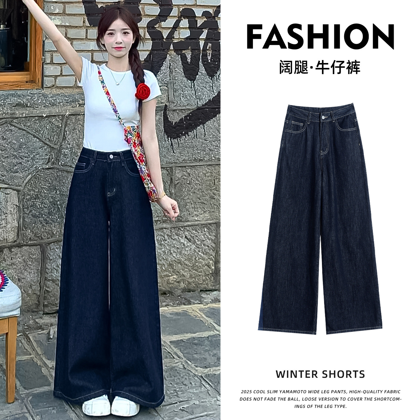 韩系复古天丝牛仔裤女秋季2025新款高腰垂感直筒宽松慵懒风阔腿裤