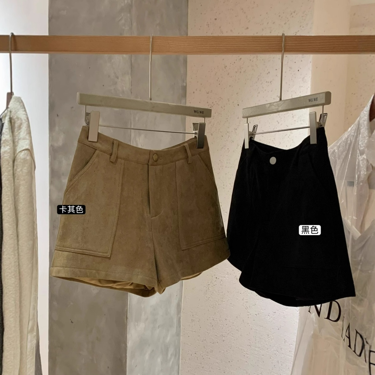 WGWE7587广州十三行女装早秋装新款小个子麂皮绒工装口袋阔腿短裤