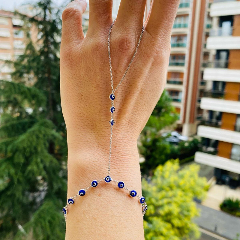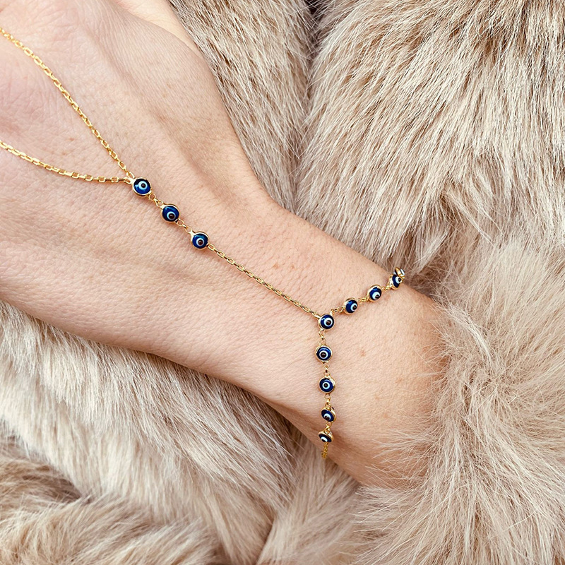 跨境哥特式邪眼指环手链 邪眼手链手链 可调节幸运眼手链手指手链